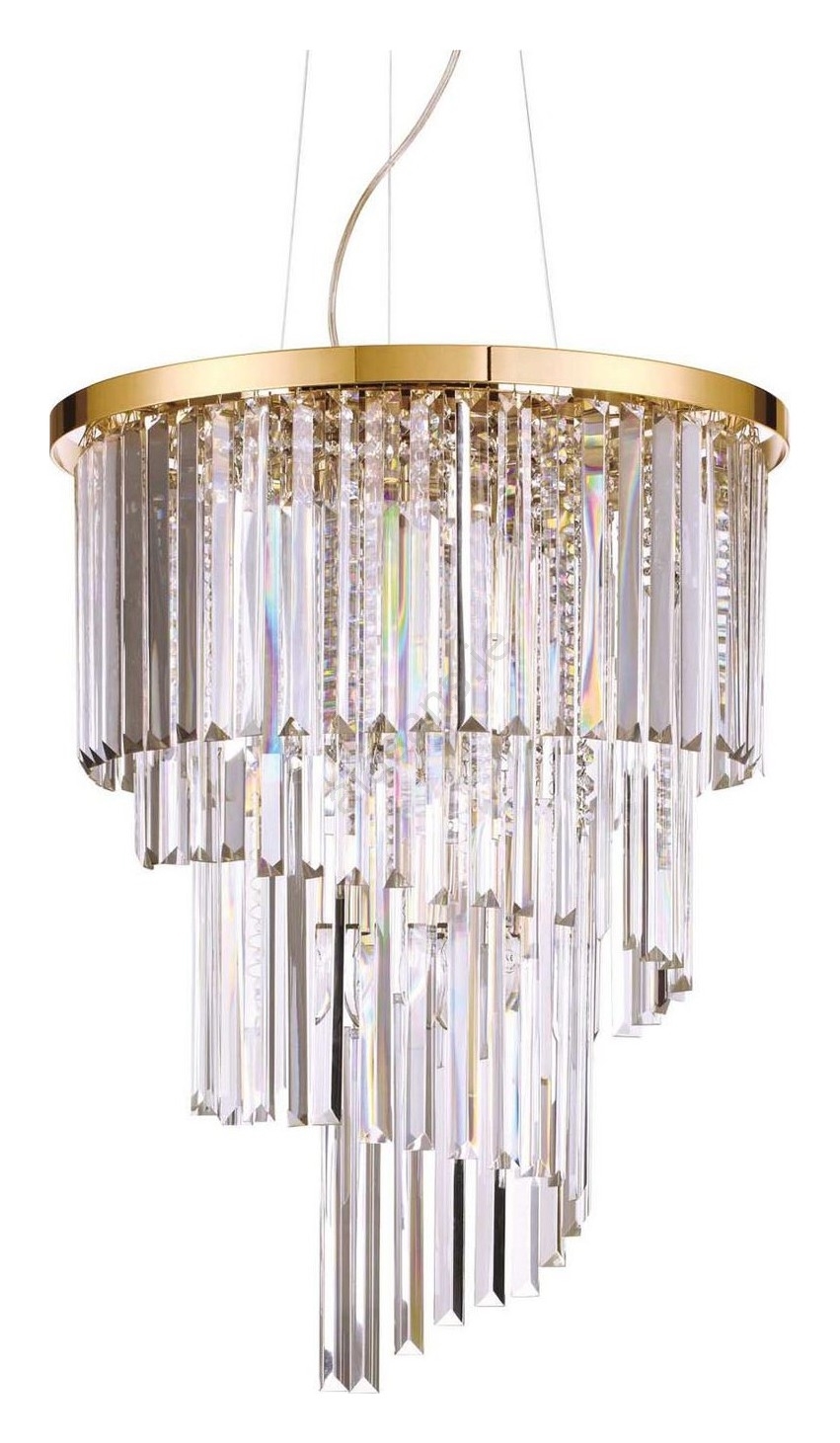 Ideal Lux - Crystal chandelier on a string CARLTON 12xE14/40W/230V d. 50 cm gold characterizes nice and functional design.  A bulb with E14 cap is suitable for the light. Here, you can buy other bulbs at advantageous prices. You will have an interesting addtiion to your home.