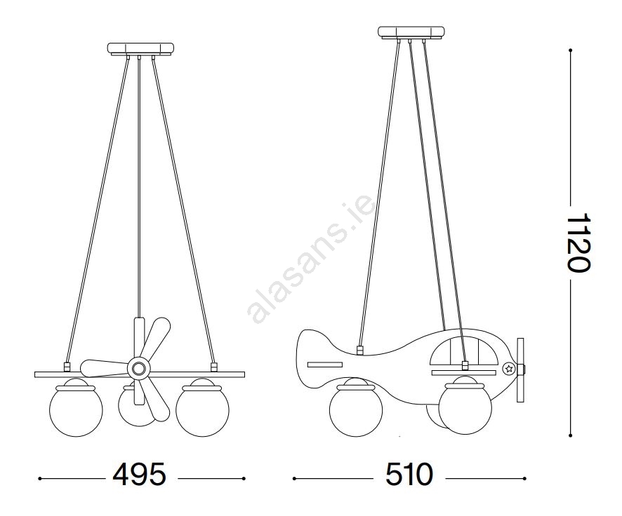 Ideal Lux - Children's chandelier on a string AVION 3xE27/28W/230V blue characterizes nice and functional design.  A bulb with E27 cap is suitable for the light. Here, you can buy other bulbs at advantageous prices. You will have an interesting addtiion to your home.