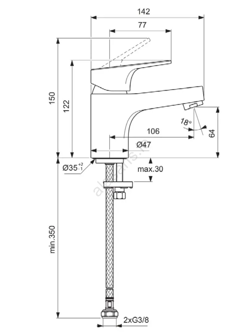 • Offers a comfortable clearance (distance between spout and basin) of 64 mm.