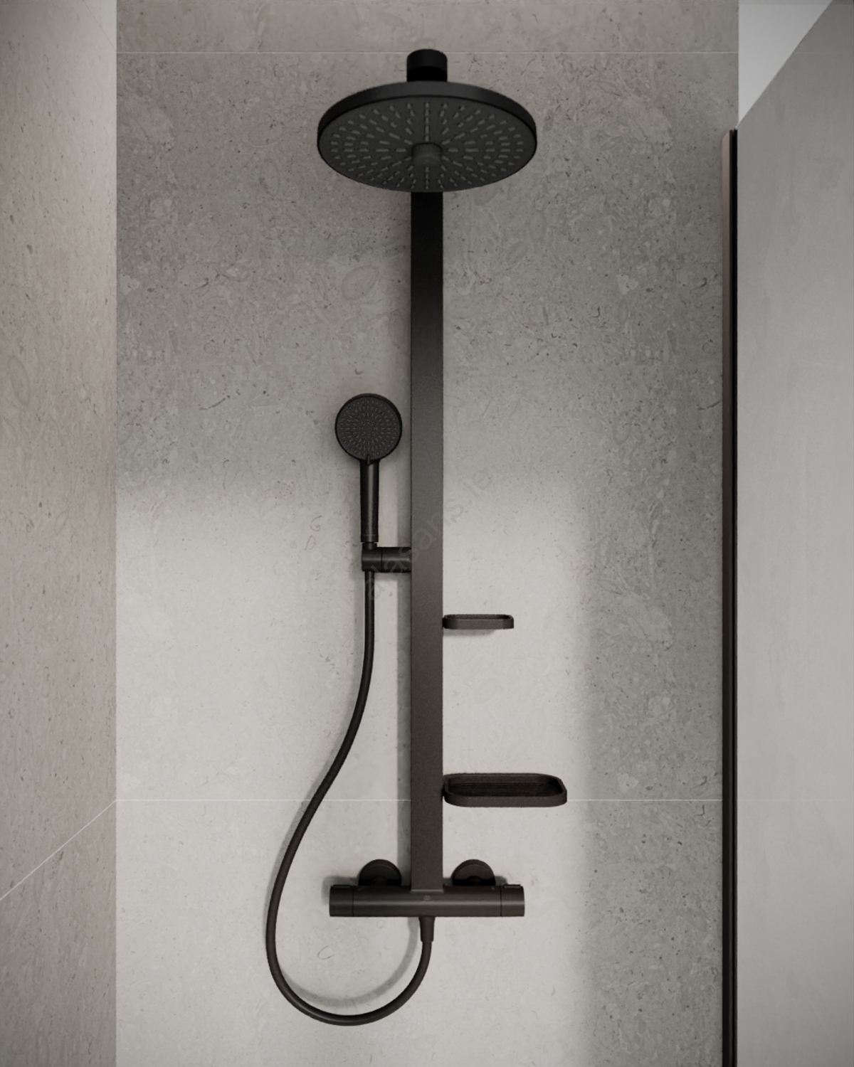 • The Ideal Standard CeraTherm ALU+ shower set is supplied in a uniform silky black finish.