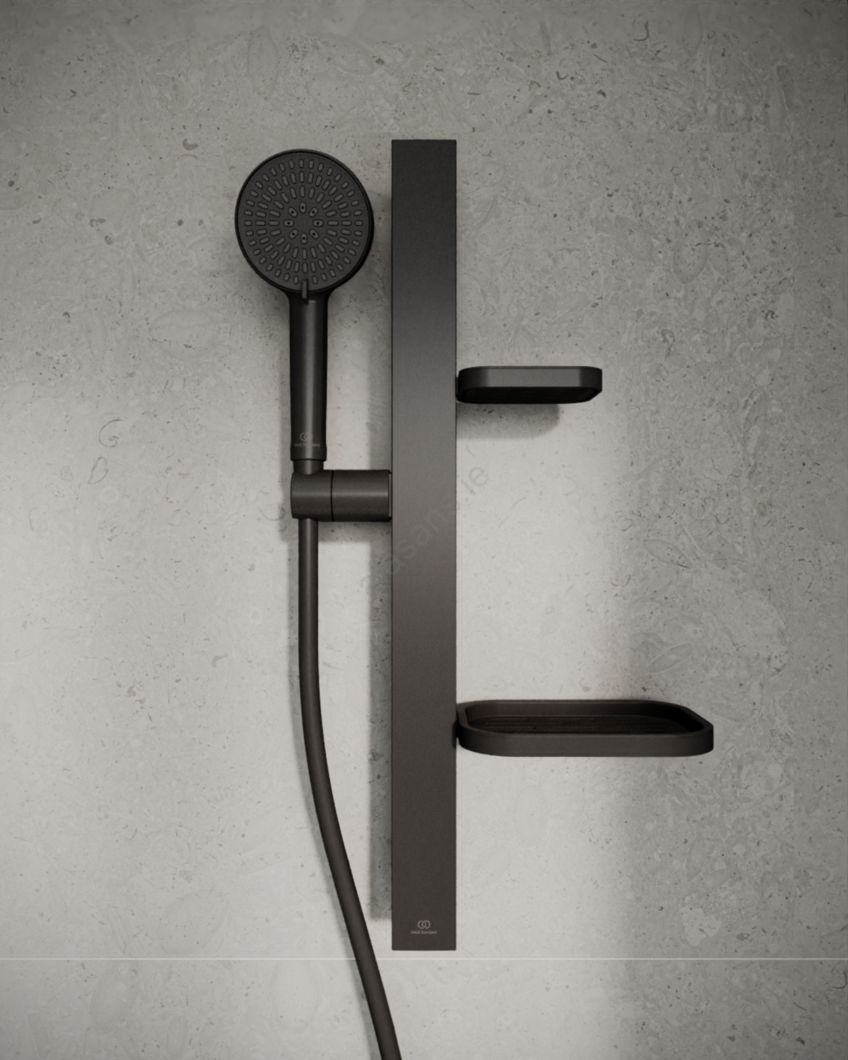 • The rail includes a sliding holder for the hand shower.