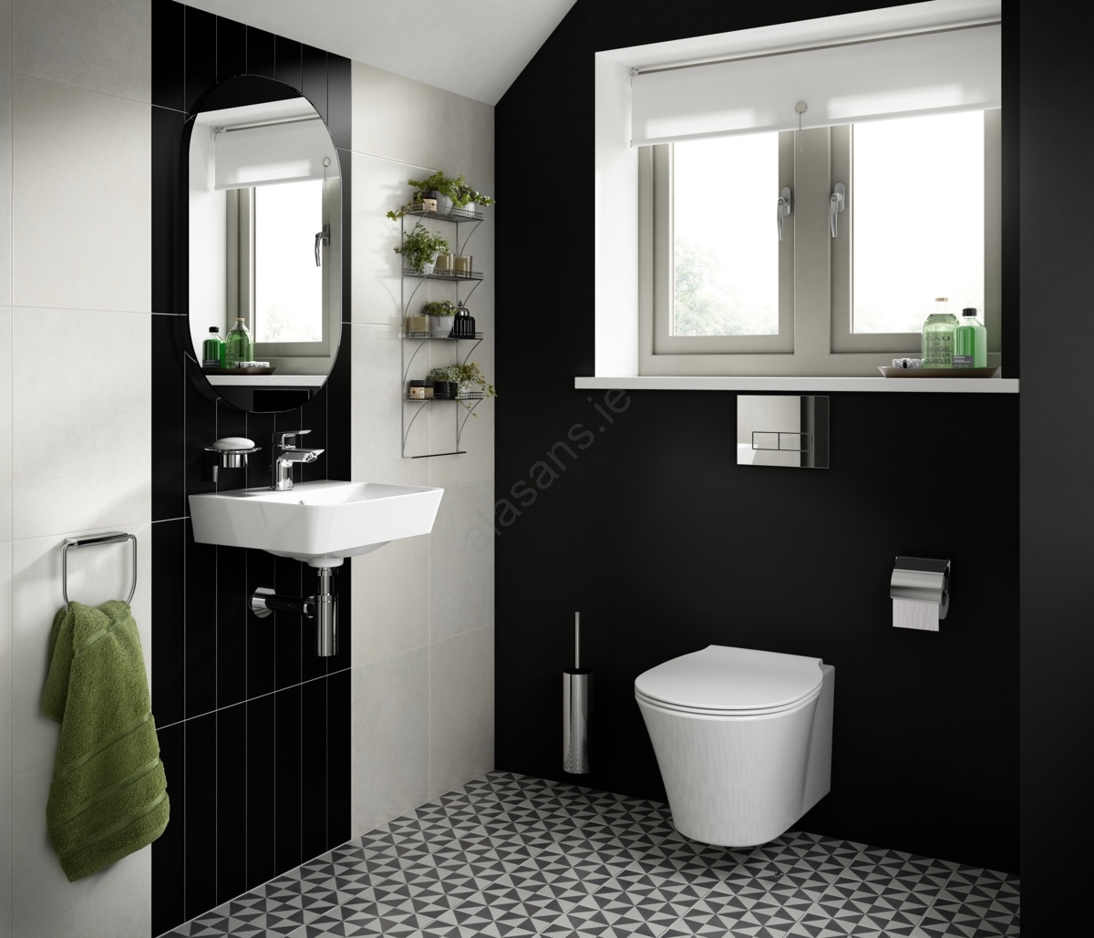 • Cube wall-hung washbasin from the Ideal Standard Connect Air series is designed with a simple, clean style, ideal for compact spaces such as toilets.