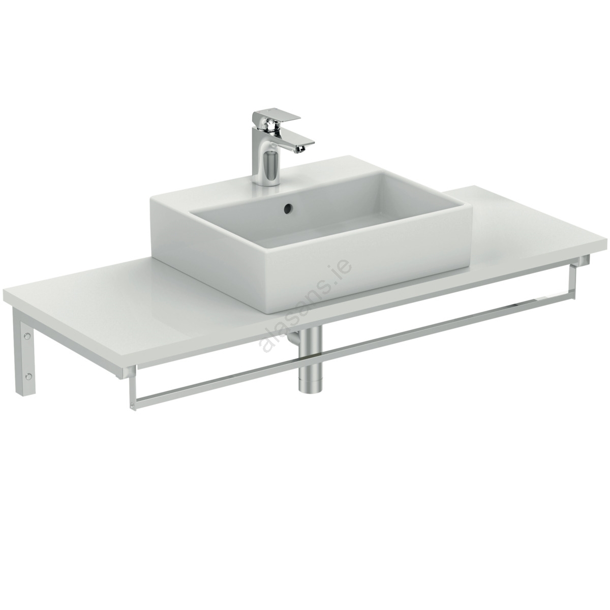 • The Ideal Standard Strada ceramic washbasin is a countertop model distinguished by its elegant cubic design.