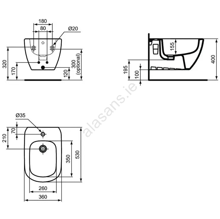 Ideal Standard T457001 - TESI Wall-Hung Bidet, White Ceramic