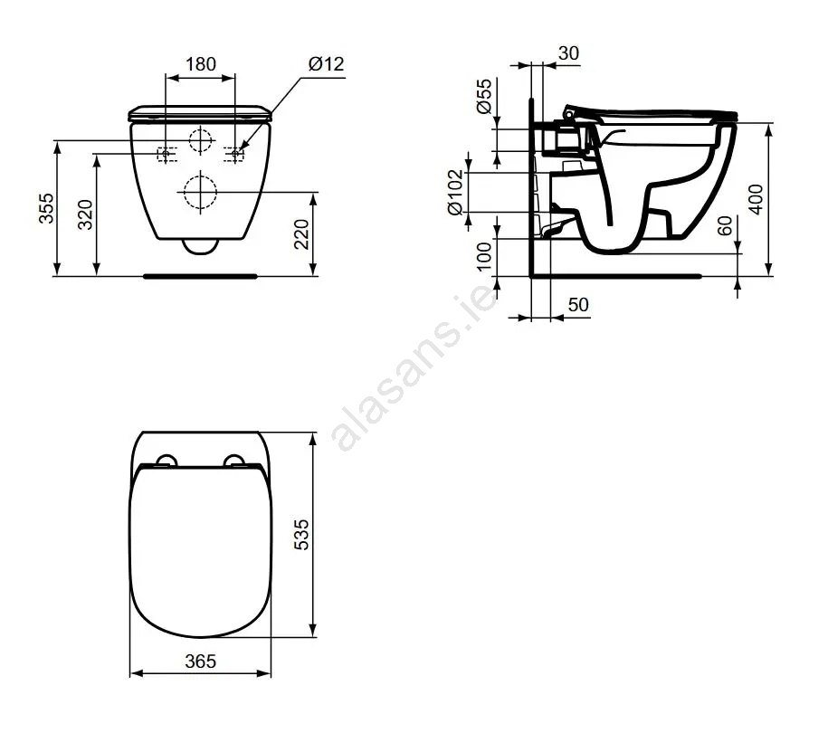 • The toilet bowl is designed for siphonic flushing.