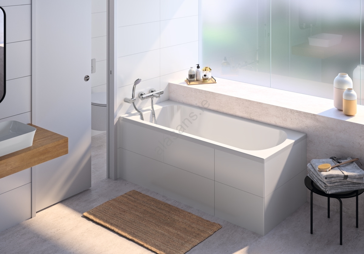 • This rectangular bathtub is designed for cladding or for installation with optional panels available for separate purchase.