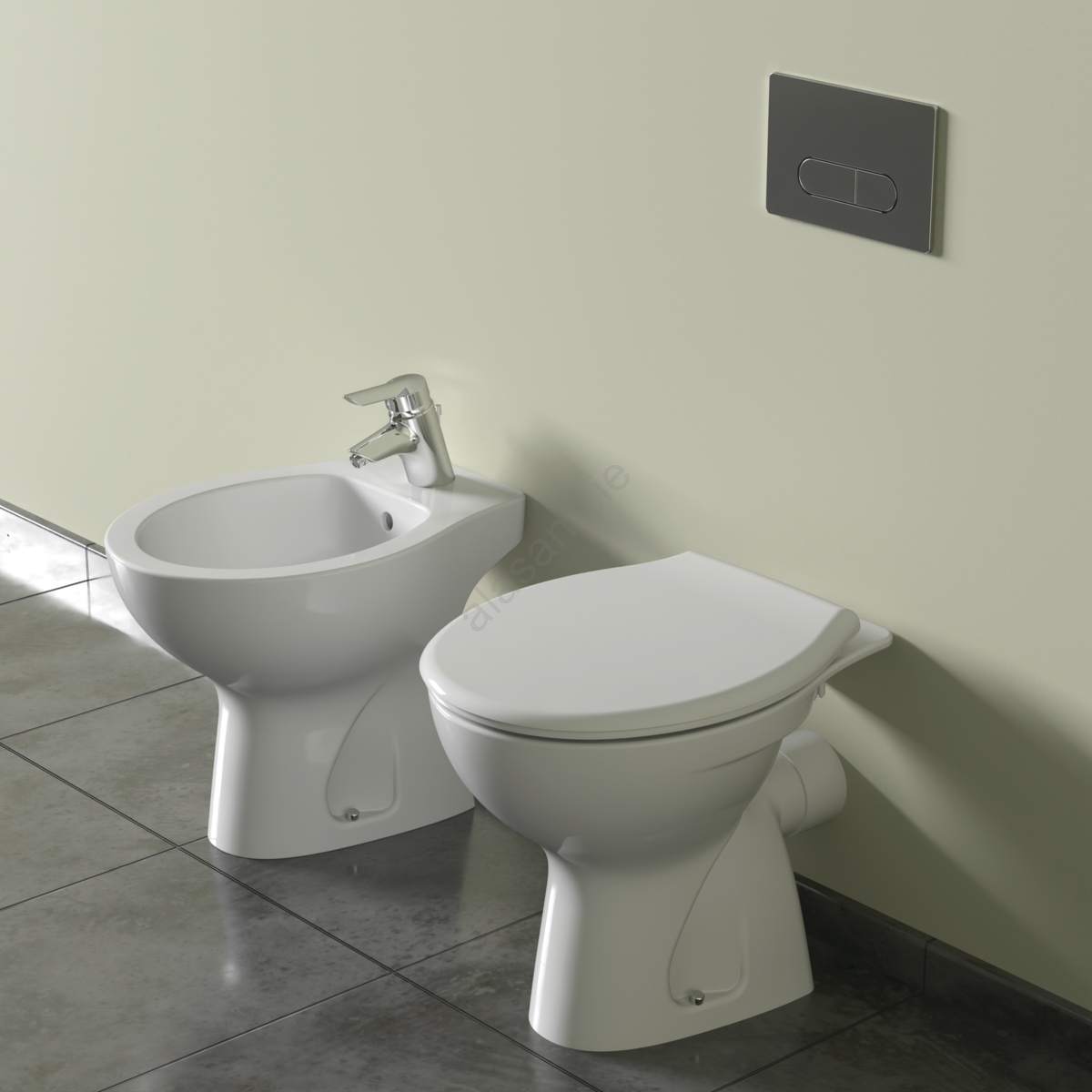 • The floor-standing toilet is made from high-quality sanitary ceramic in a white finish.