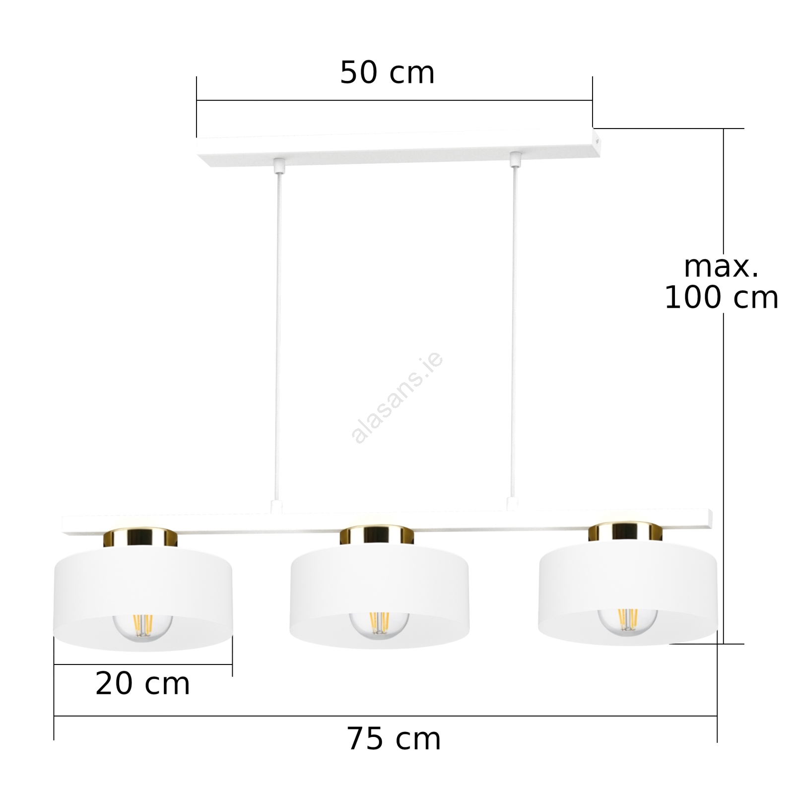 IGNIA Cable Pendant Light 3xE27/60W/230V White characterizes nice and functional design.  A bulb with E27 cap is suitable for the light. Here, you can buy other bulbs at advantageous prices. You will have an interesting addtiion to your home.