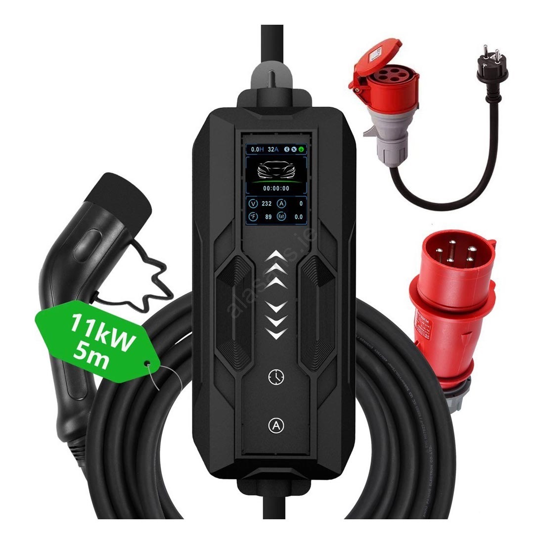 • With a power of 11 kW it is ideal for fast and efficient charging, whether you're on the road, at home or at a shopping center parking lot.