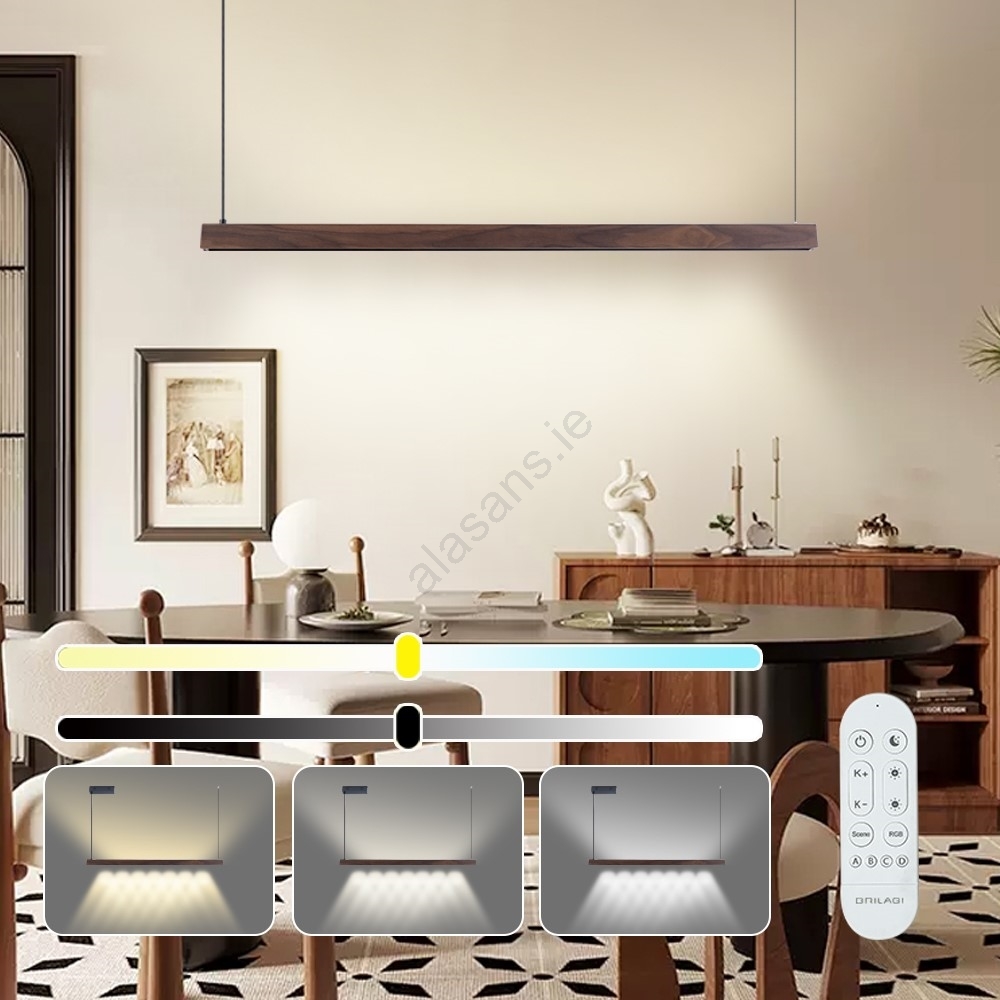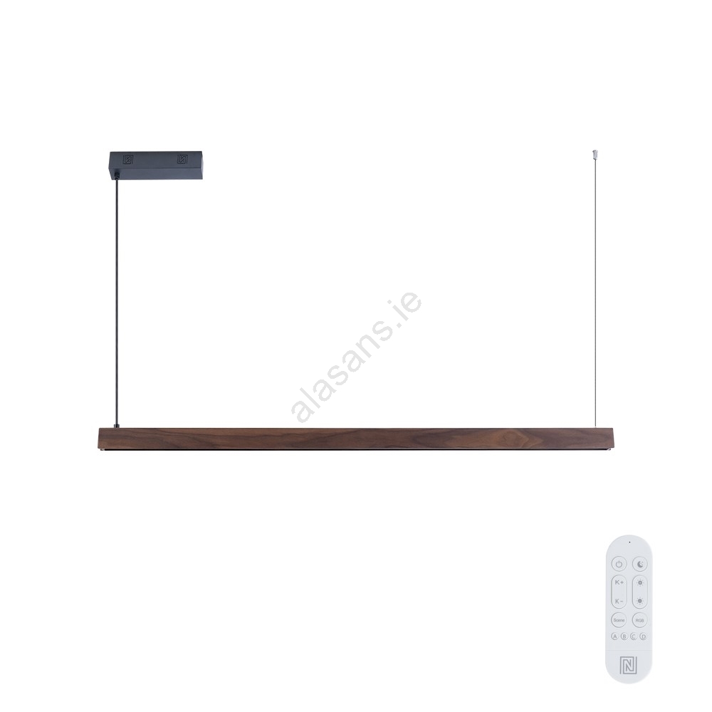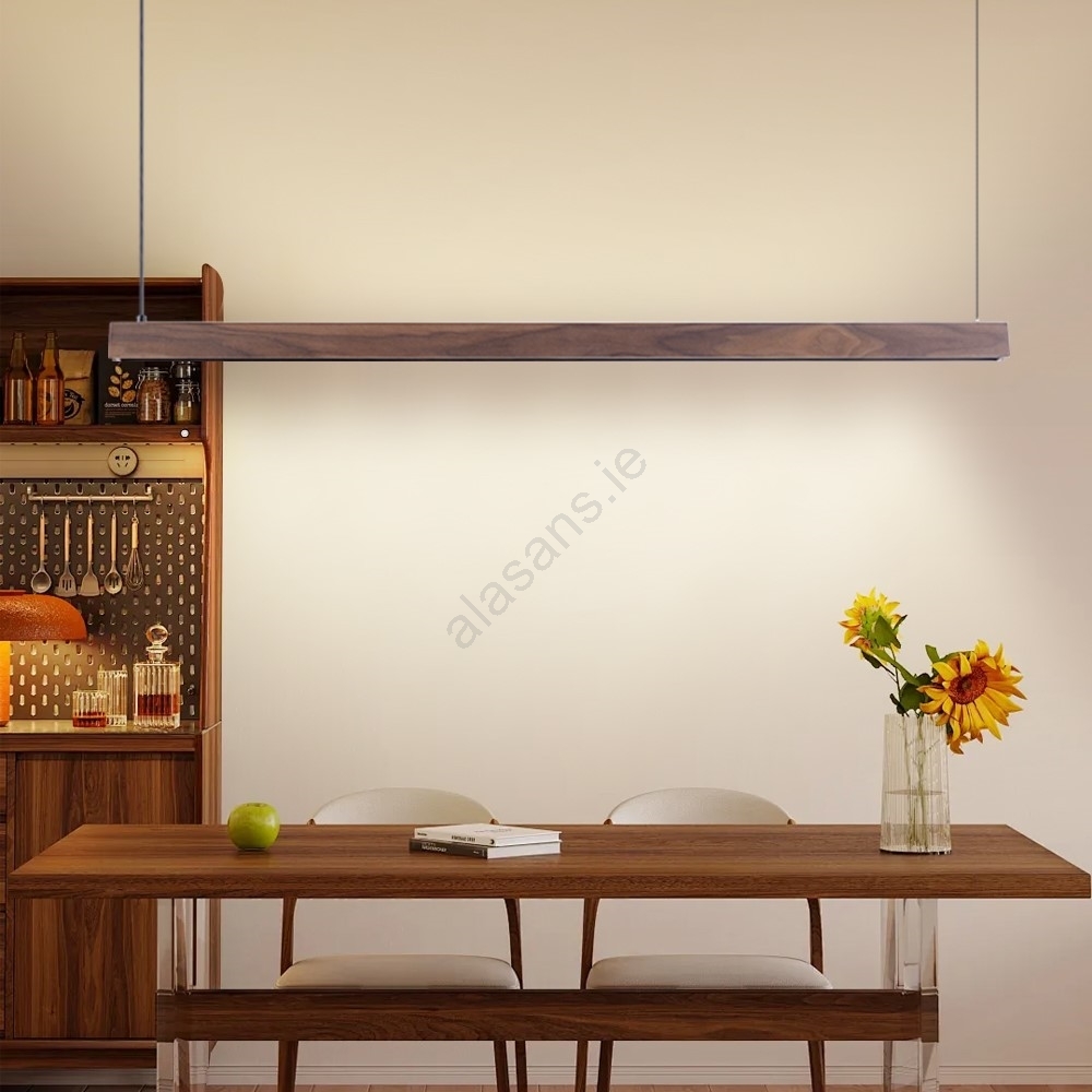 • The elegant lines of this walnut-finish LED fixture beautifully complement modern interiors and are ideal as primary lighting for the dining table, kitchen countertop, or living area.