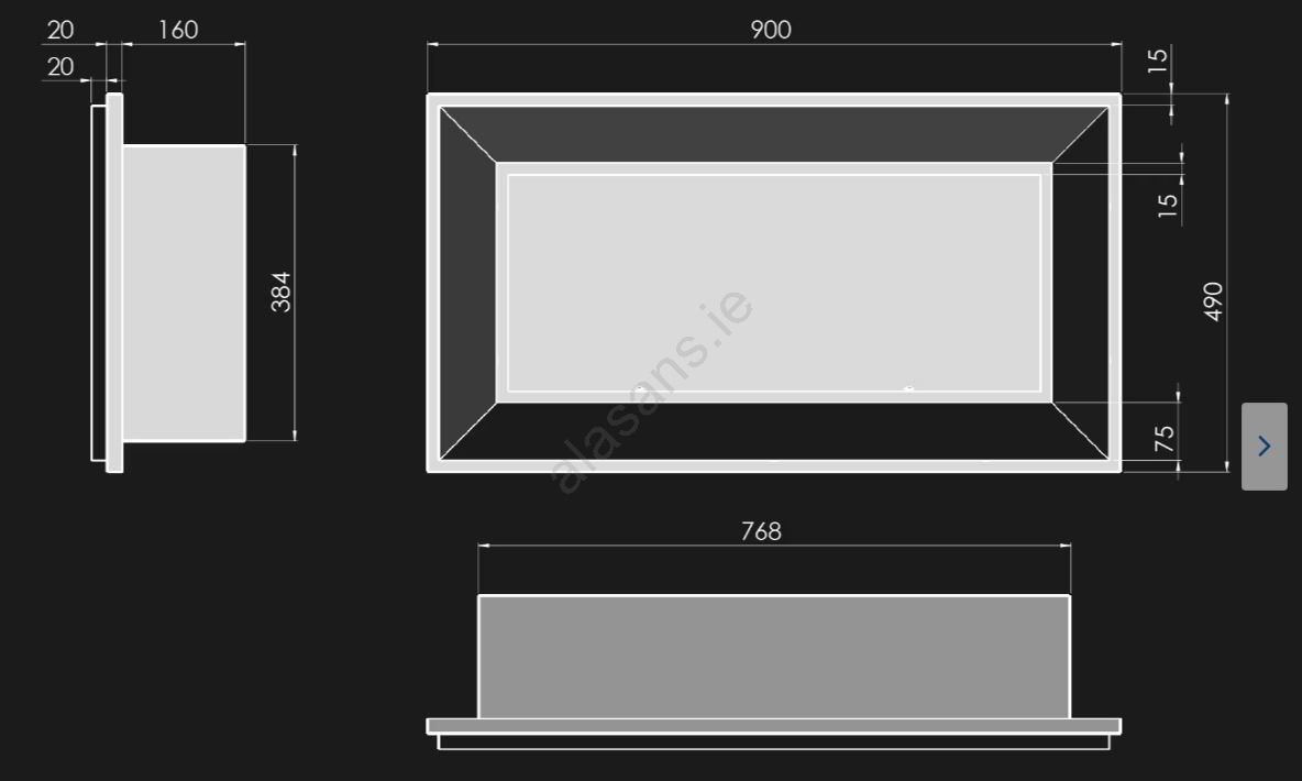 • Dimensions of the fireplace: 49 x 90 x 20 cm.