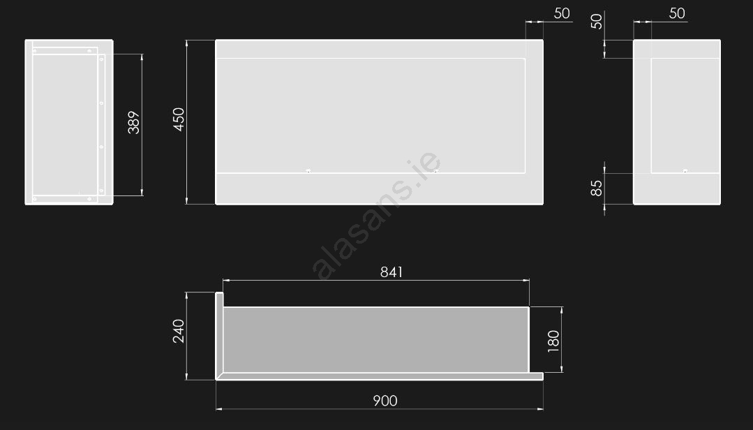 • Dimensions of the fireplace: 45 x 90 x 24 cm.