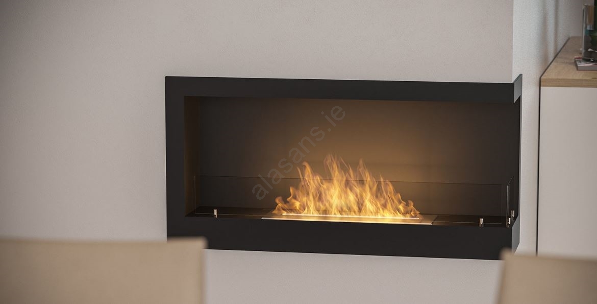 • A simple modern bio fireplace designed to be installed in a prepared niche.