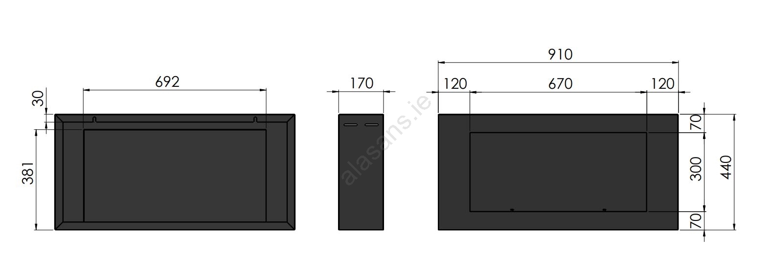 • Fireplace dimensions: 44 x 91 x 17 cm.