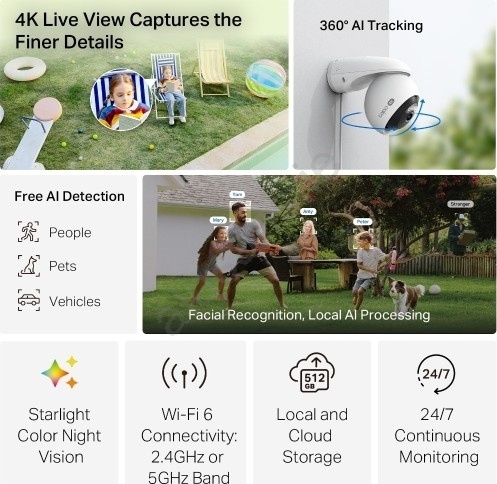 • Recordings can be stored locally on a microSD card or in the Tapo Care cloud service.