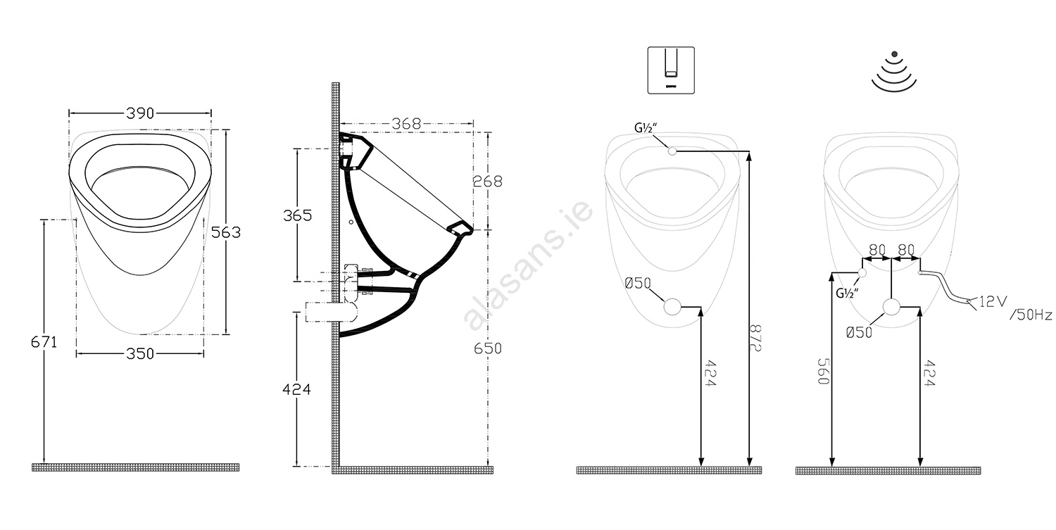 • Suitable for concealed automatic flush units or mechanical push valves.