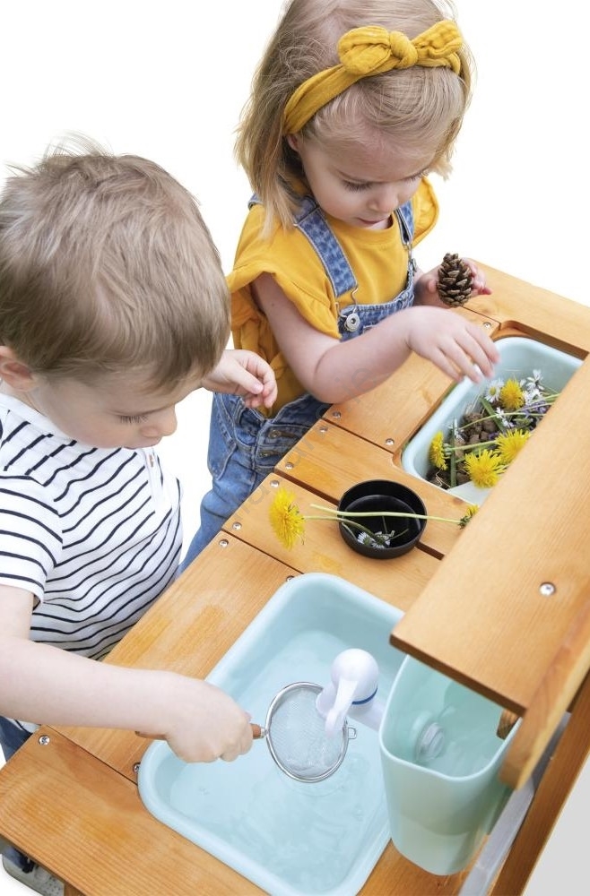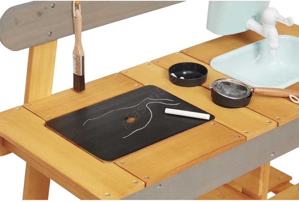 • The wooden outdoor kitchen sparks creativity and a connection to nature, delivering plenty of fun while playing in the fresh air.