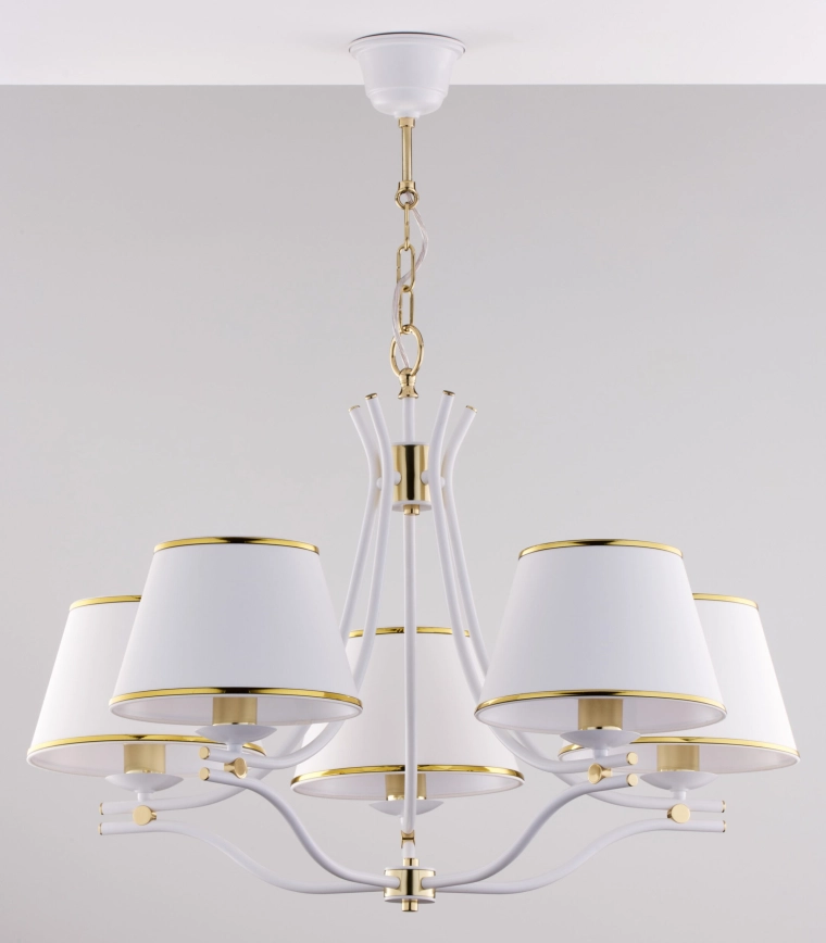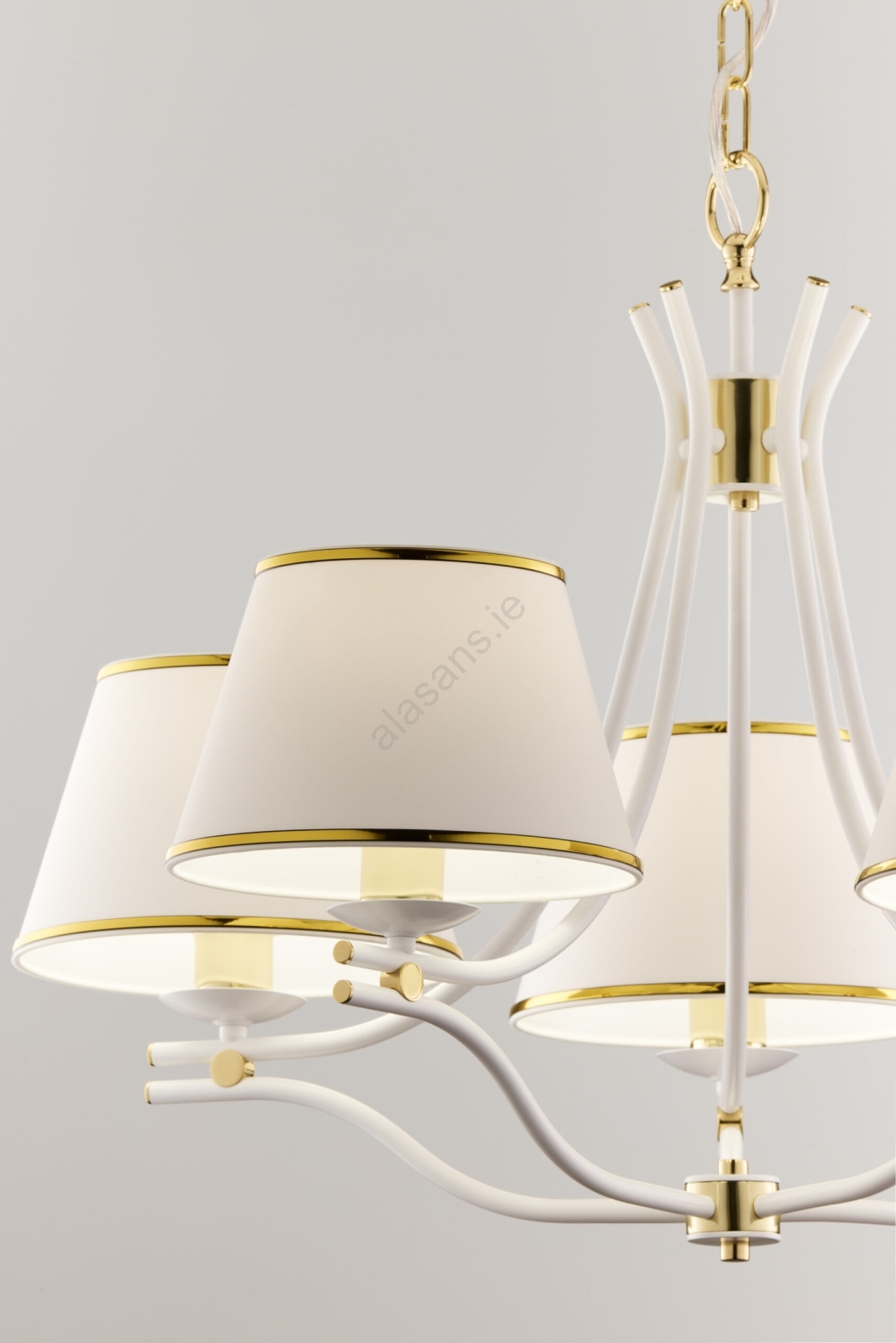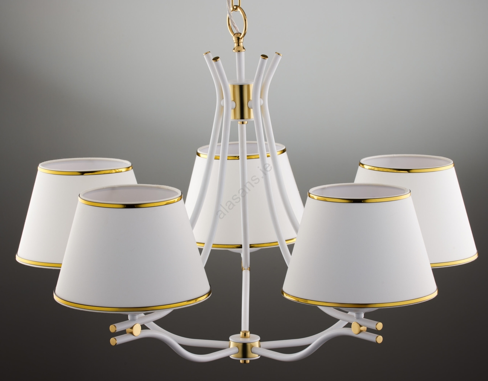 Jupiter 2084 - SAMBA chain-hung chandelier 5xE27/15W/230V white/gold characterizes nice and functional design.  A bulb with E27 cap is suitable for the light. Here, you can buy other bulbs at advantageous prices. You will have an interesting addtiion to your home.