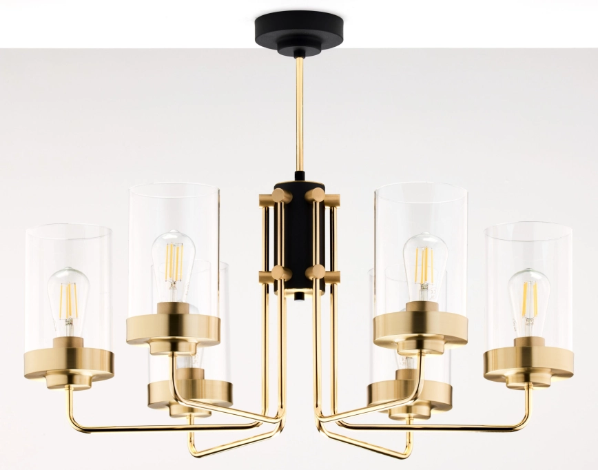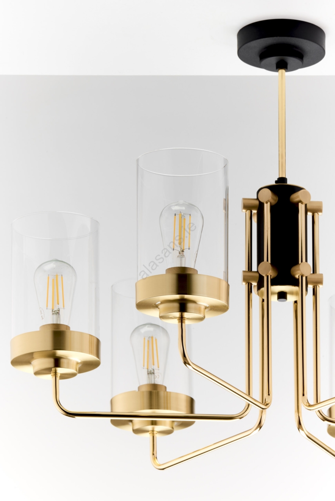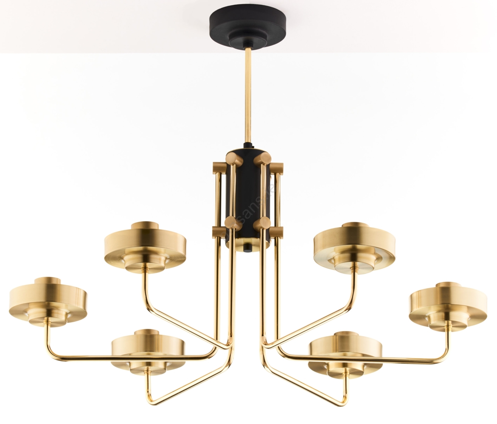 Jupiter 2089 - RAMIREZ Rod-Mounted Chandelier 6xE27/15W/230V Gold/Black characterizes nice and functional design.  A bulb with E27 cap is suitable for the light. Here, you can buy other bulbs at advantageous prices. You will have an interesting addtiion to your home.
