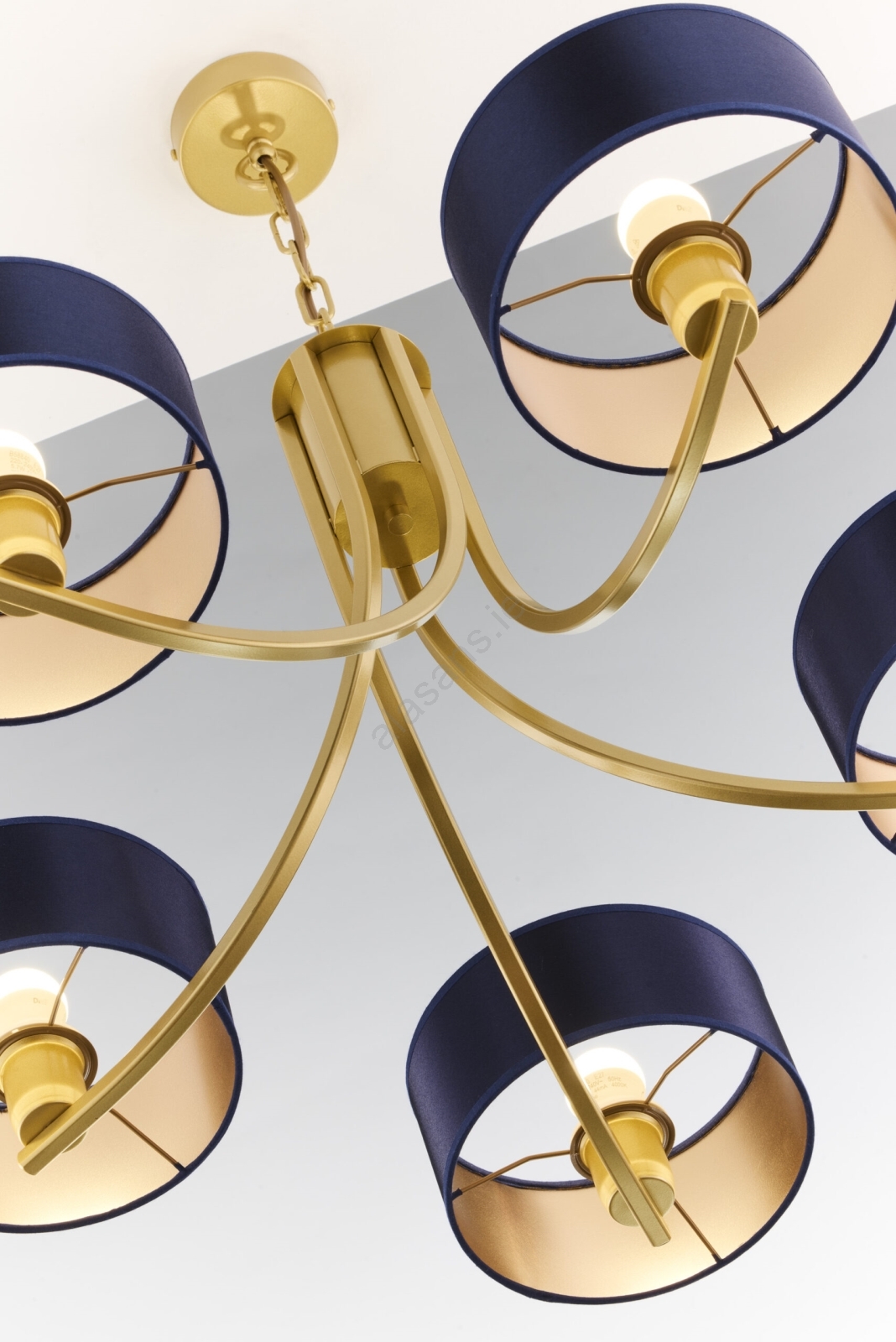 Jupiter 2094 - ARTHUR Chain-hung Chandelier 5xE27/15W/230V Blue/Gold characterizes nice and functional design.  A bulb with E27 cap is suitable for the light. Here, you can buy other bulbs at advantageous prices. You will have an interesting addtiion to your home.