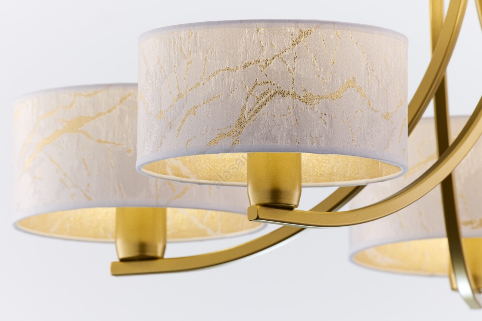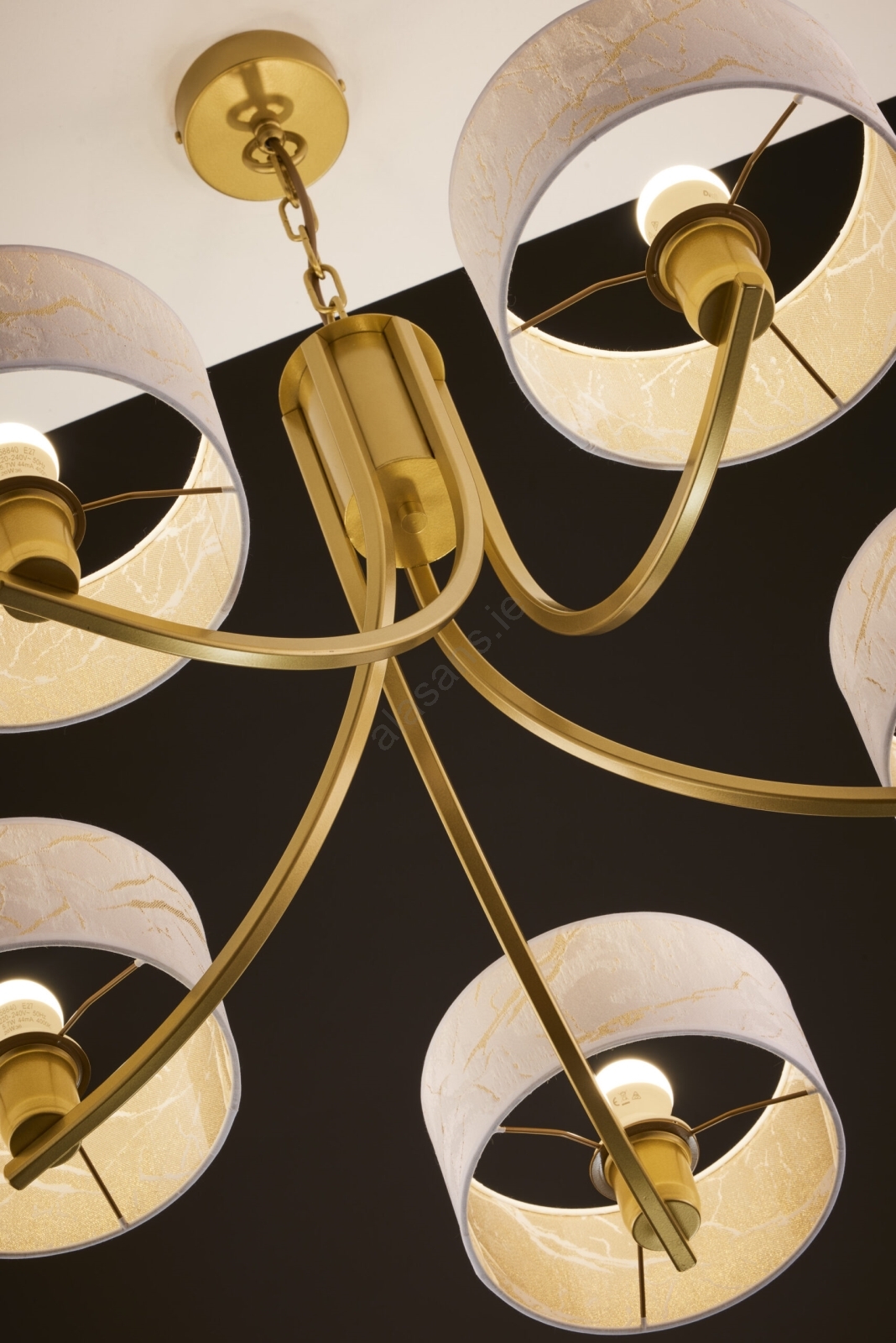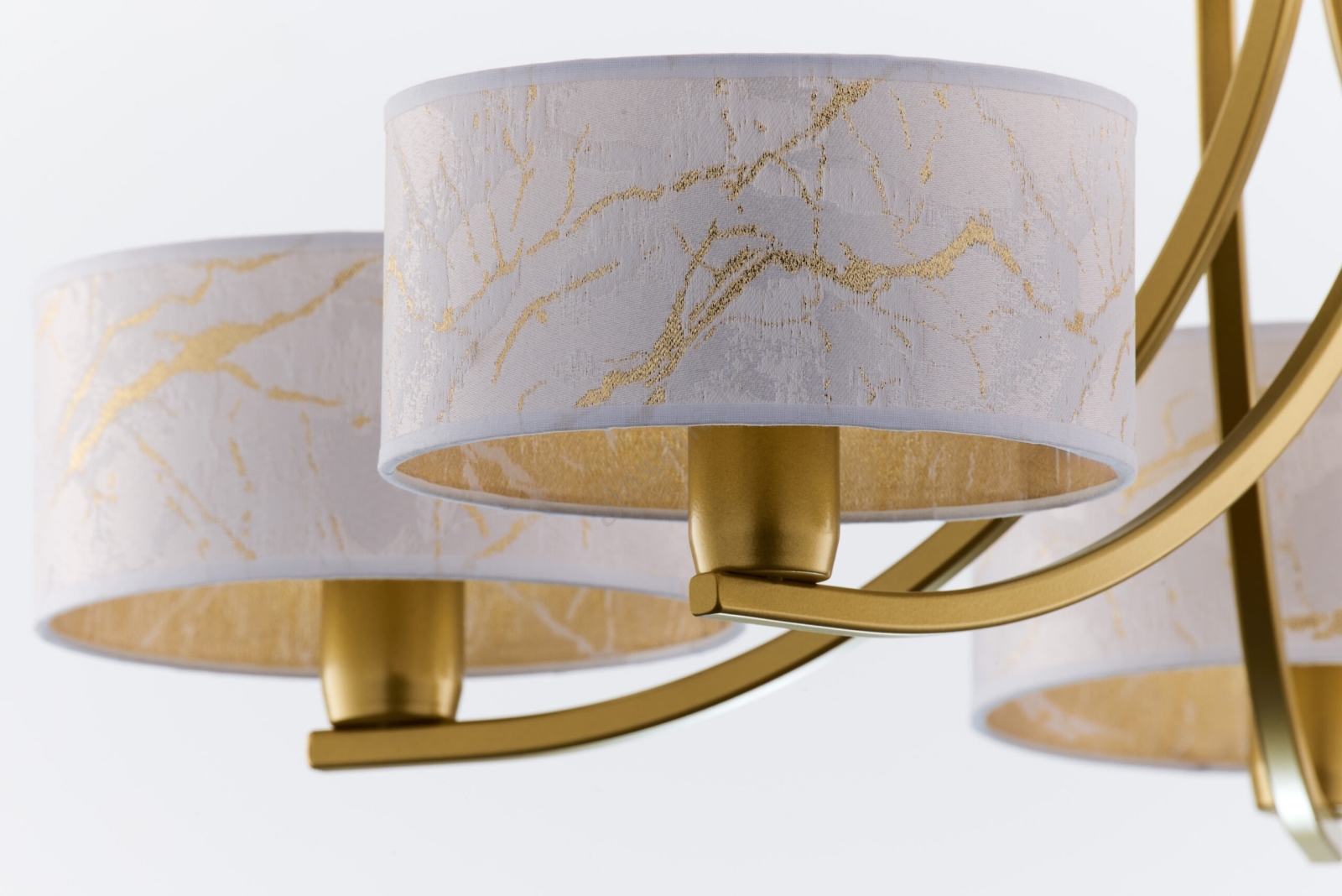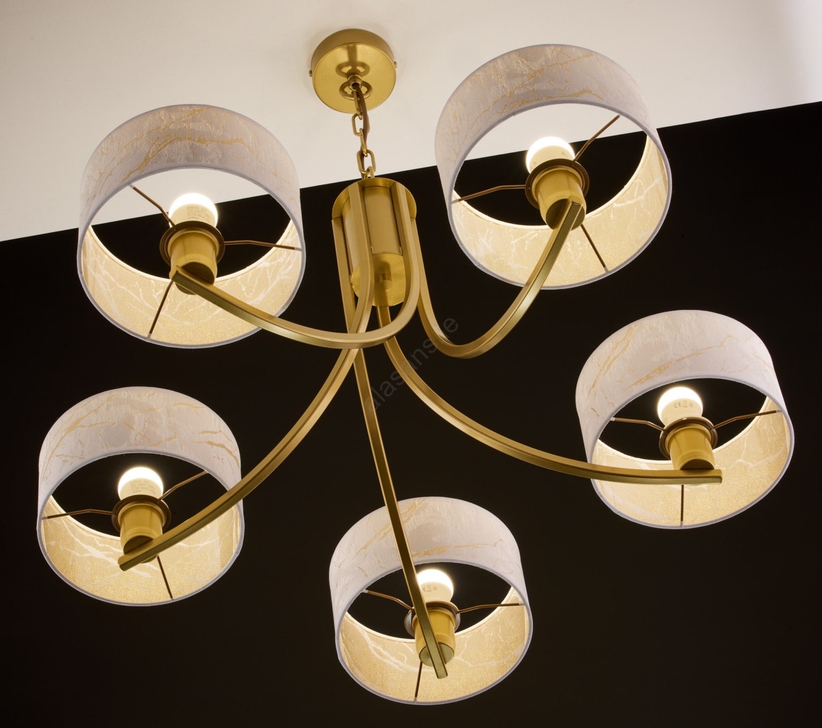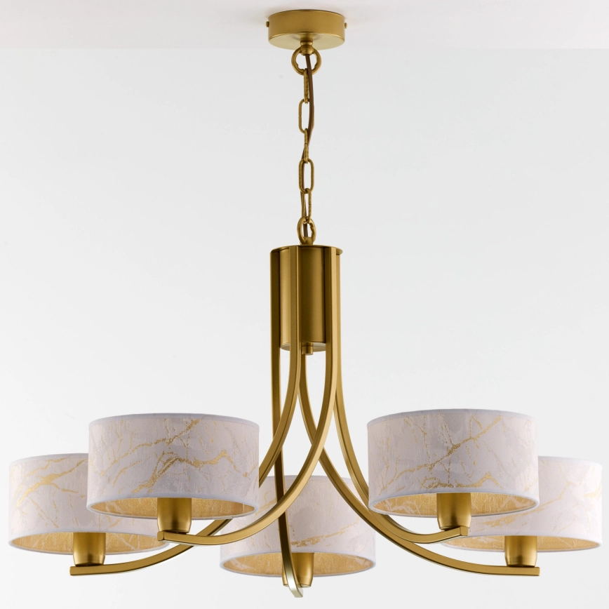 Jupiter 2097 - Chain-hung chandelier ARTHUR 5xE27/15W/230V white/gold/marble-effect characterizes nice and functional design.  A bulb with E27 cap is suitable for the light. Here, you can buy other bulbs at advantageous prices. You will have an interesting addtiion to your home.