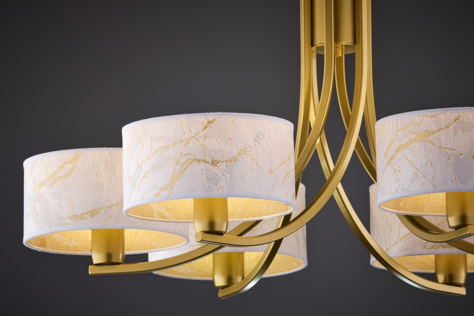 Jupiter 2098 - ARTHUR Chain Chandelier 6xE27/15W/230V white/gold/marble effect characterizes nice and functional design.  A bulb with E27 cap is suitable for the light. Here, you can buy other bulbs at advantageous prices. You will have an interesting addtiion to your home.