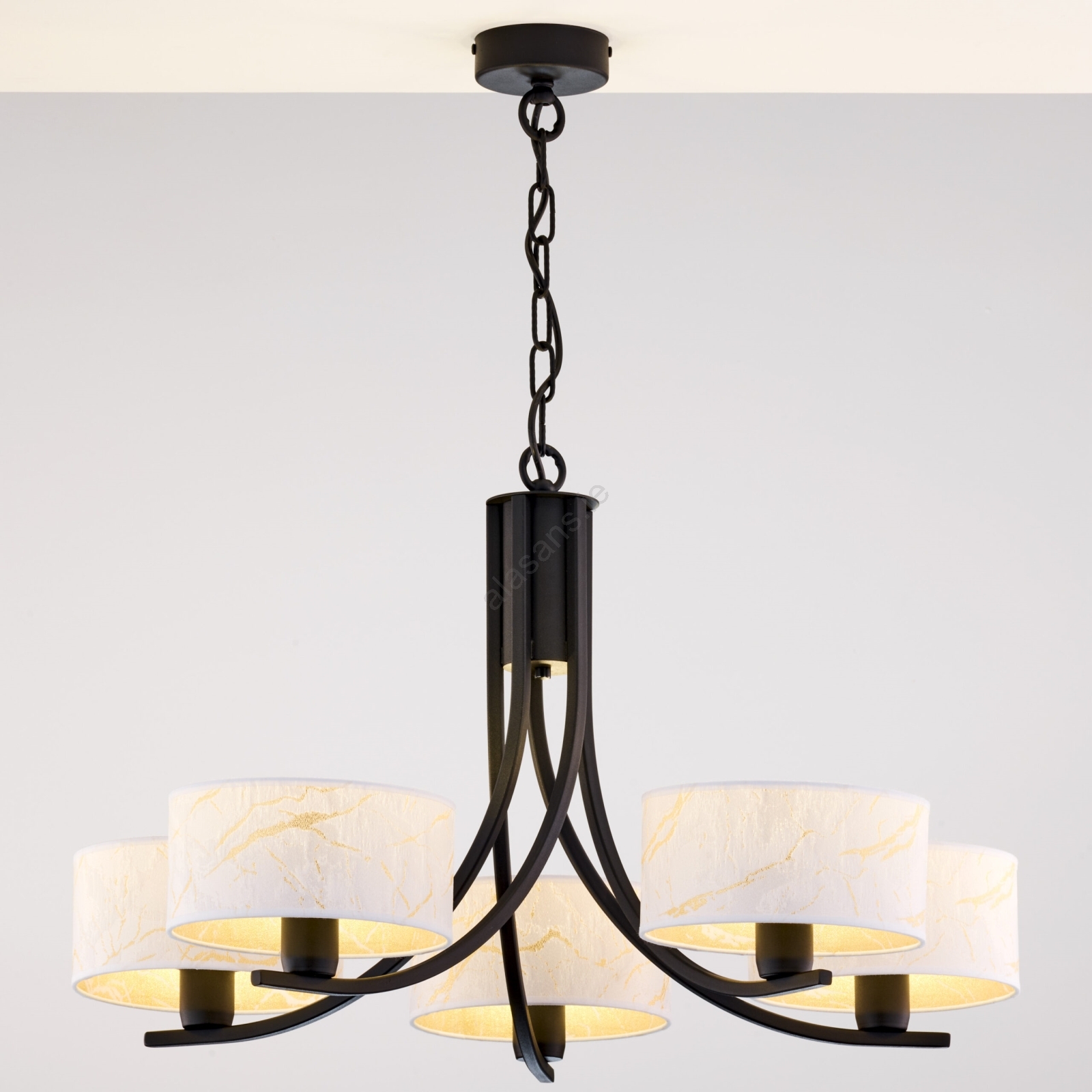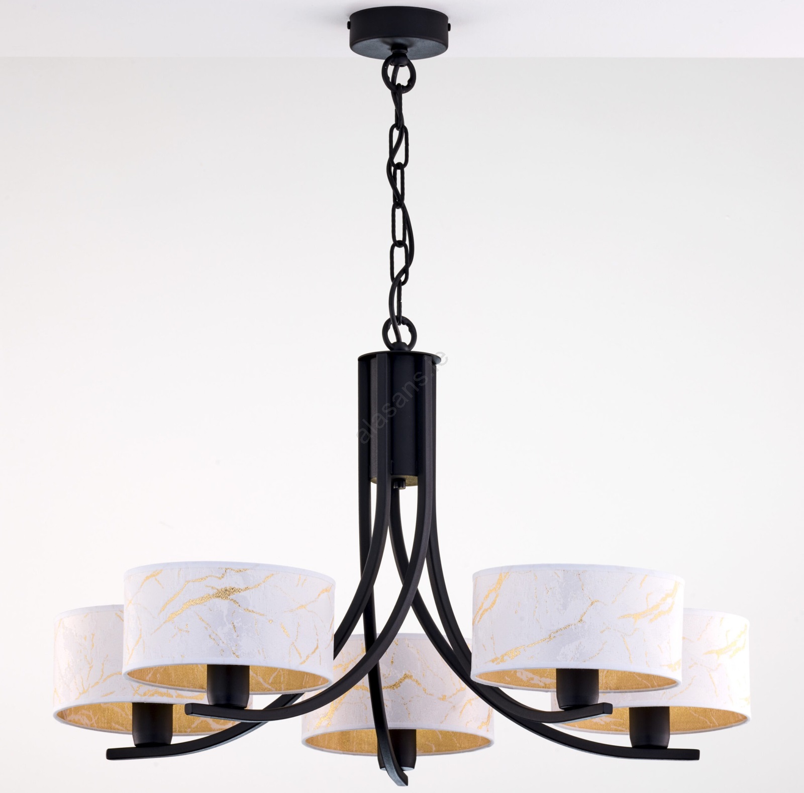 Jupiter 2104 - ARTHUR Chain-Mounted Chandelier 5xE27/15W/230V white/black/marble effect characterizes nice and functional design.  A bulb with E27 cap is suitable for the light. Here, you can buy other bulbs at advantageous prices. You will have an interesting addtiion to your home.