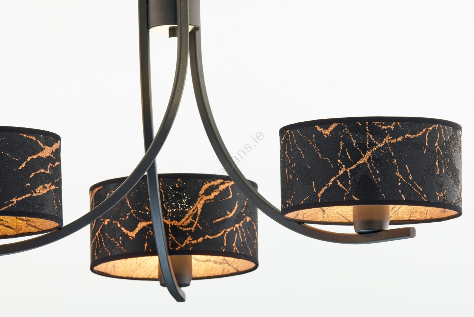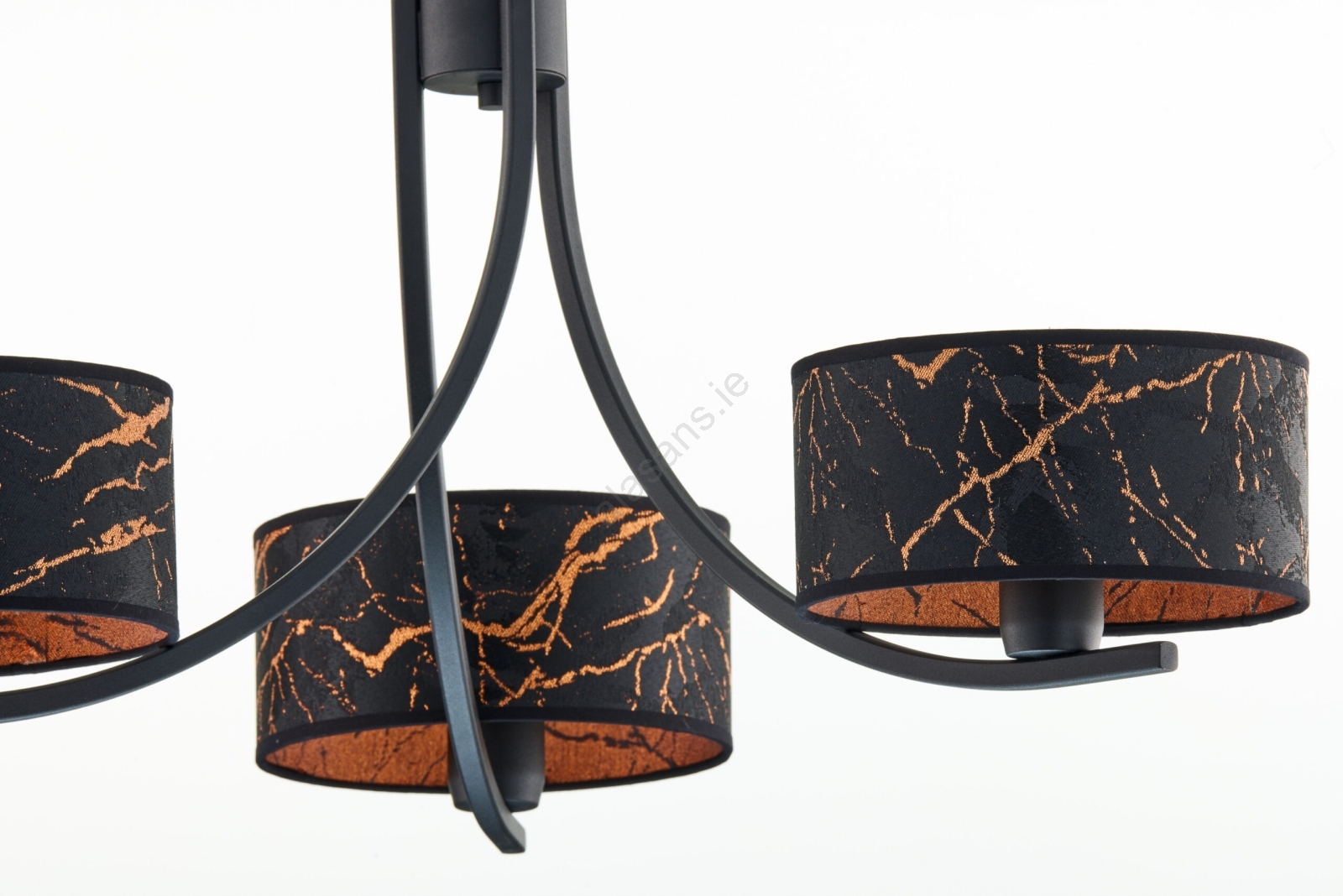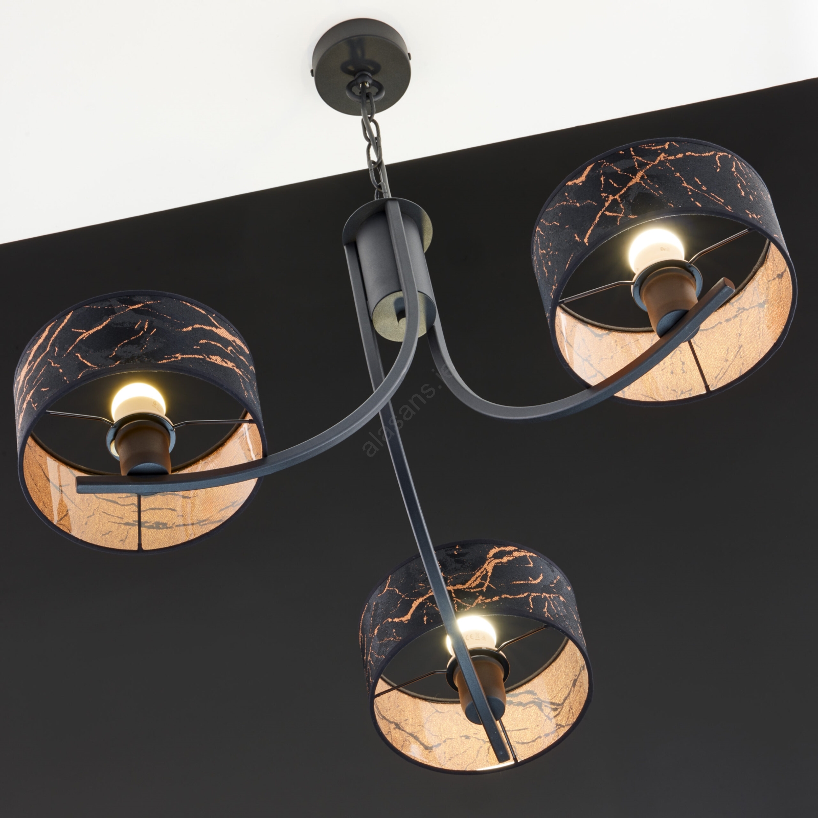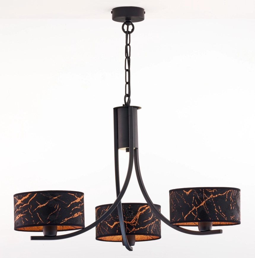 Jupiter 2106 - Chain-hung chandelier ARTHUR 3xE27/15W/230V black/orange/marble decor characterizes nice and functional design.  A bulb with E27 cap is suitable for the light. Here, you can buy other bulbs at advantageous prices. You will have an interesting addtiion to your home.