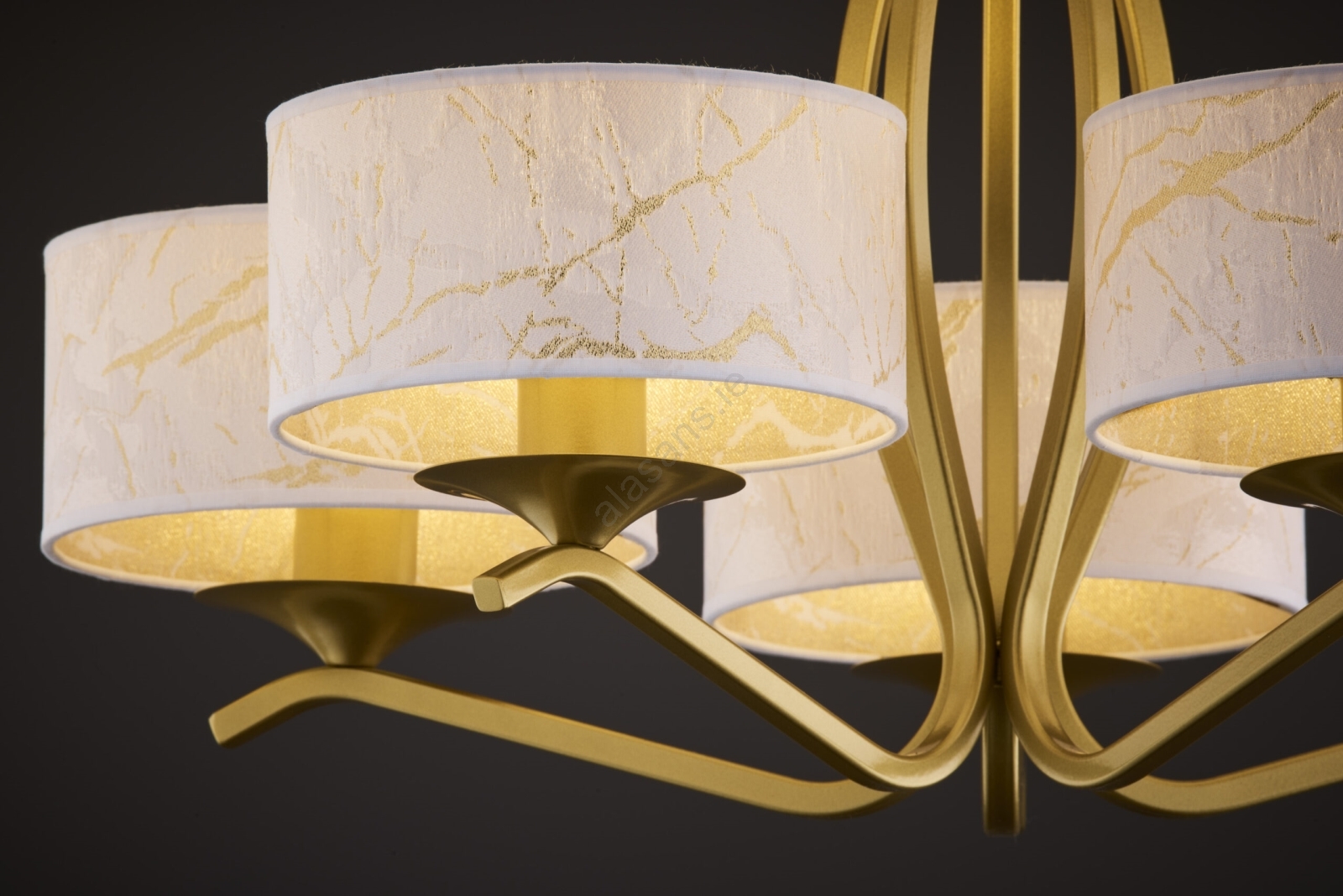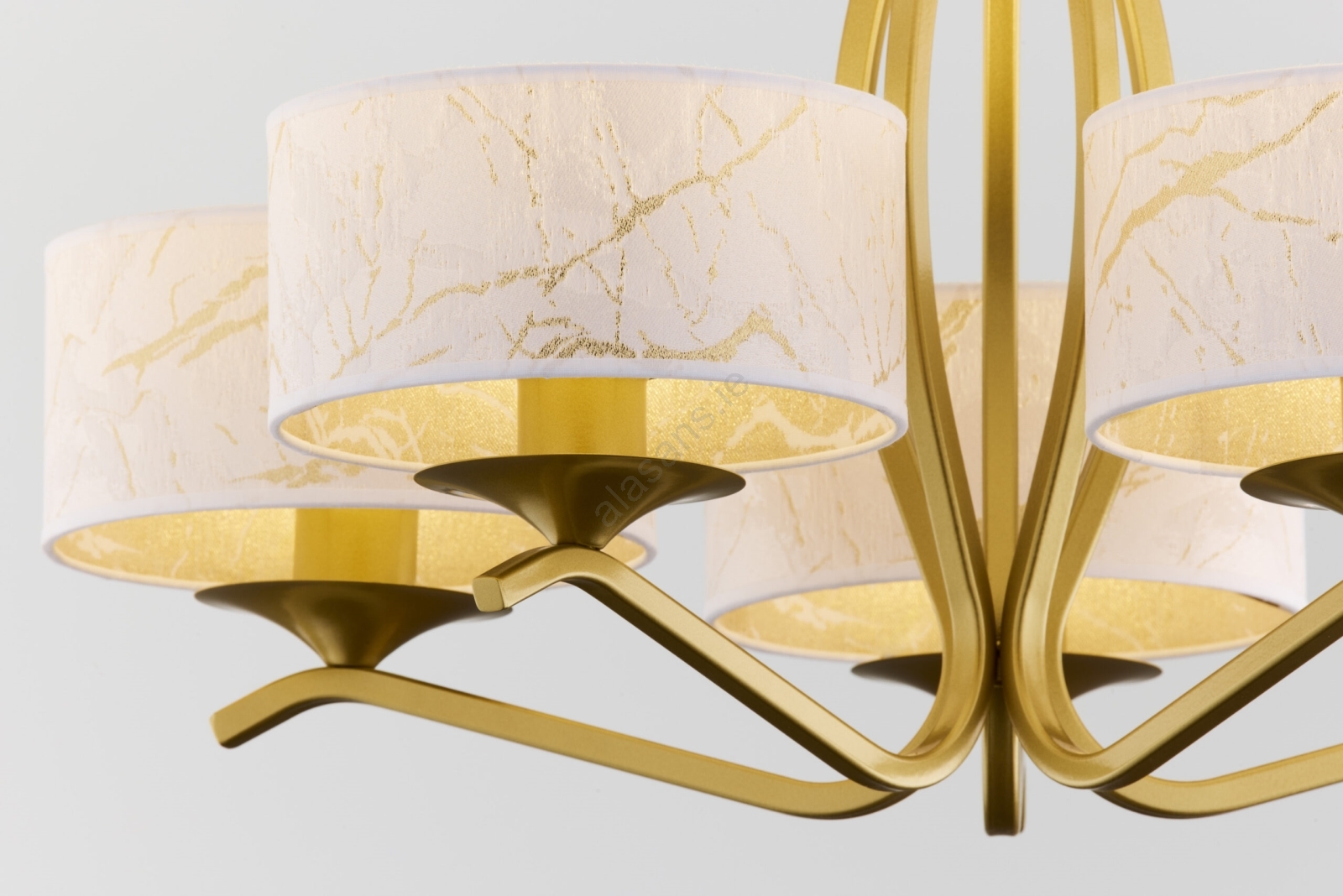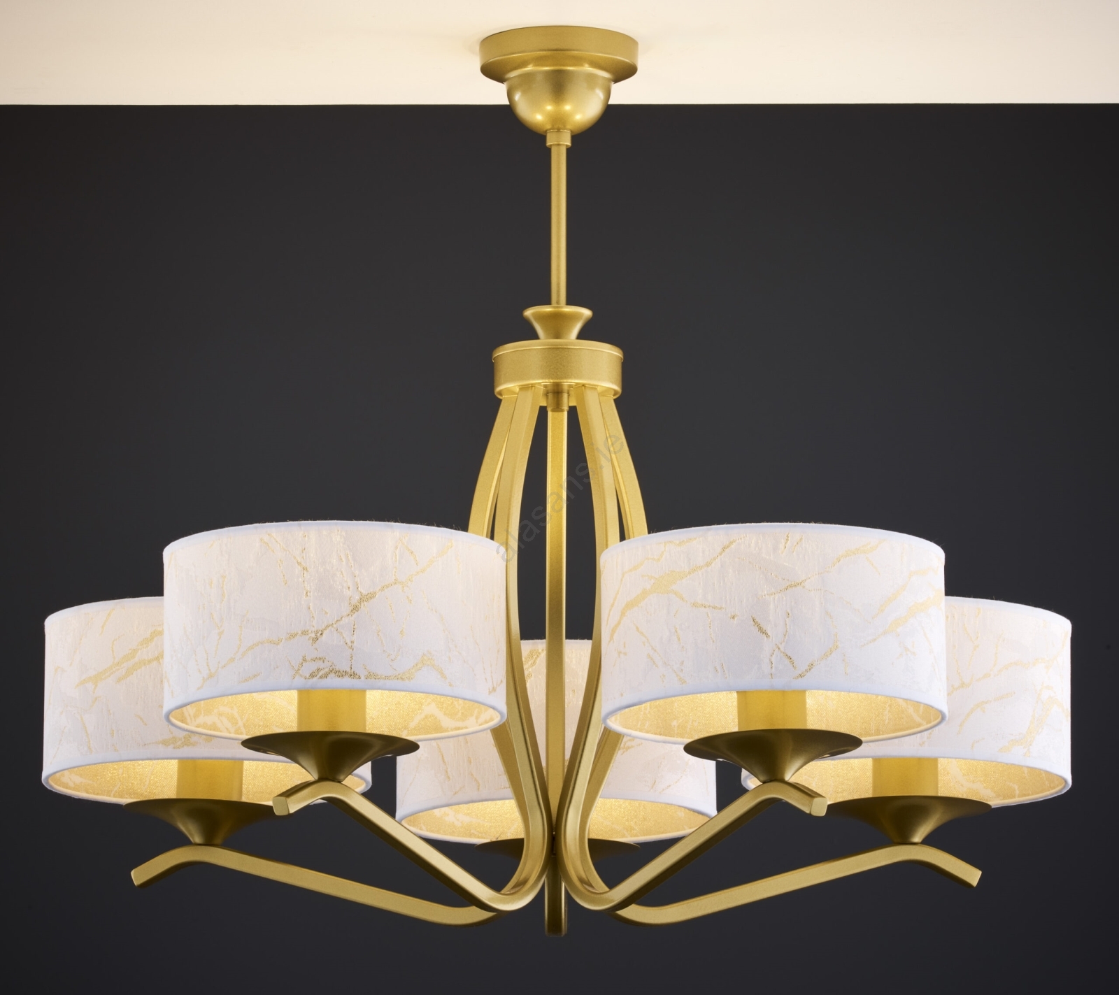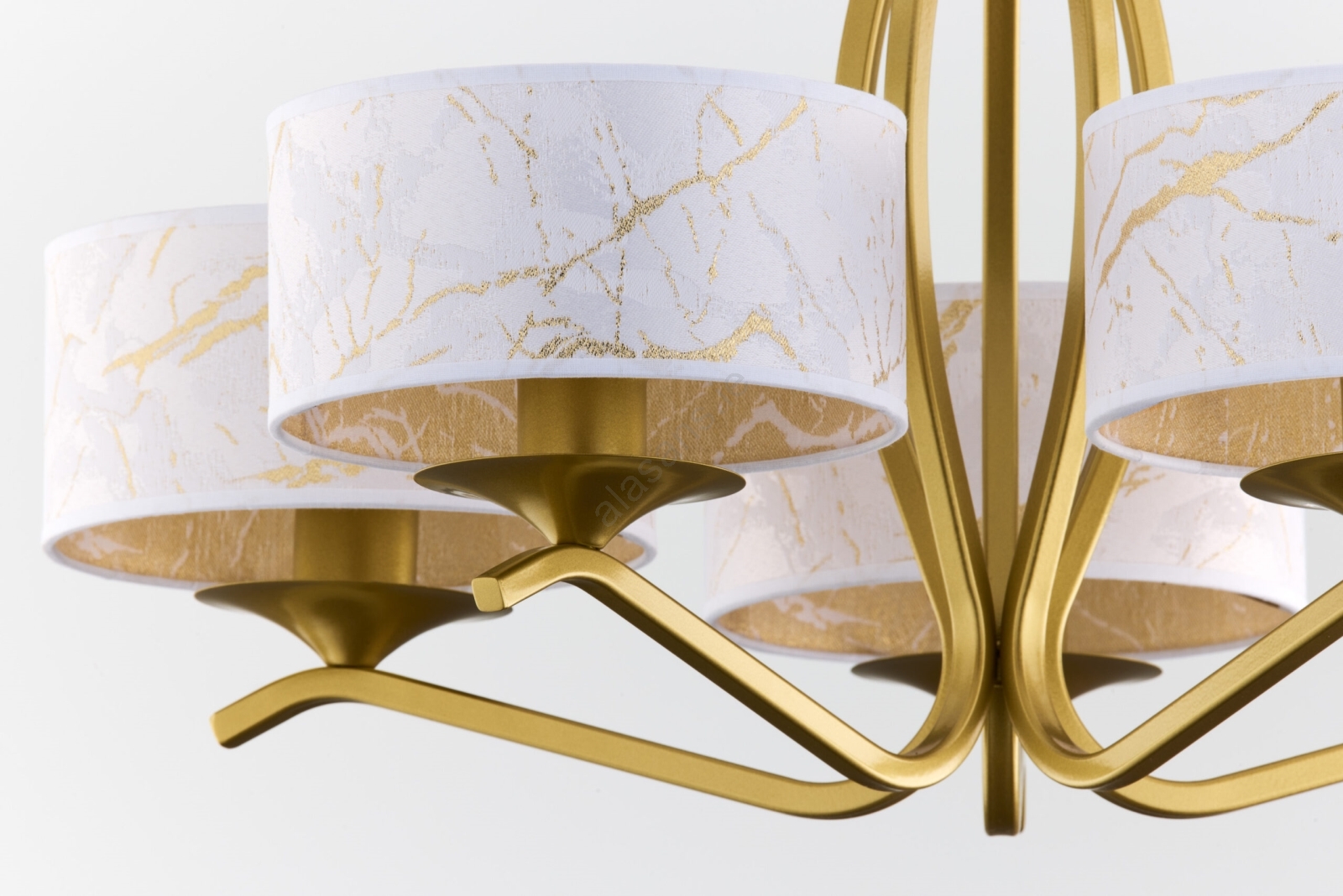 Jupiter 2110 - KASZMIR Rod Chandelier, 5x E27/15W/230V, White/Gold/Marble Effect characterizes nice and functional design.  A bulb with E27 cap is suitable for the light. Here, you can buy other bulbs at advantageous prices. You will have an interesting addtiion to your home.
