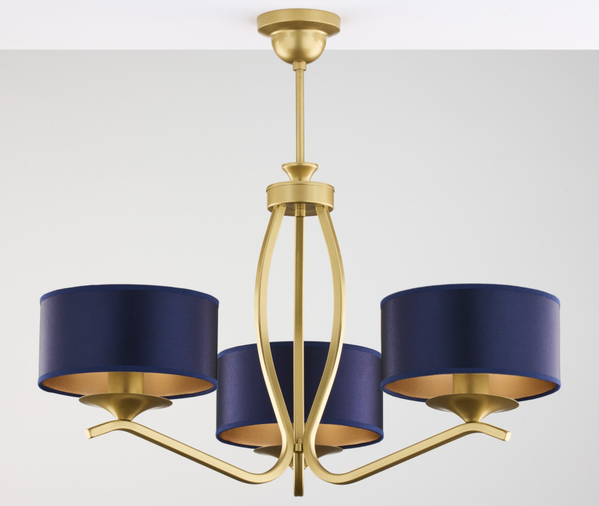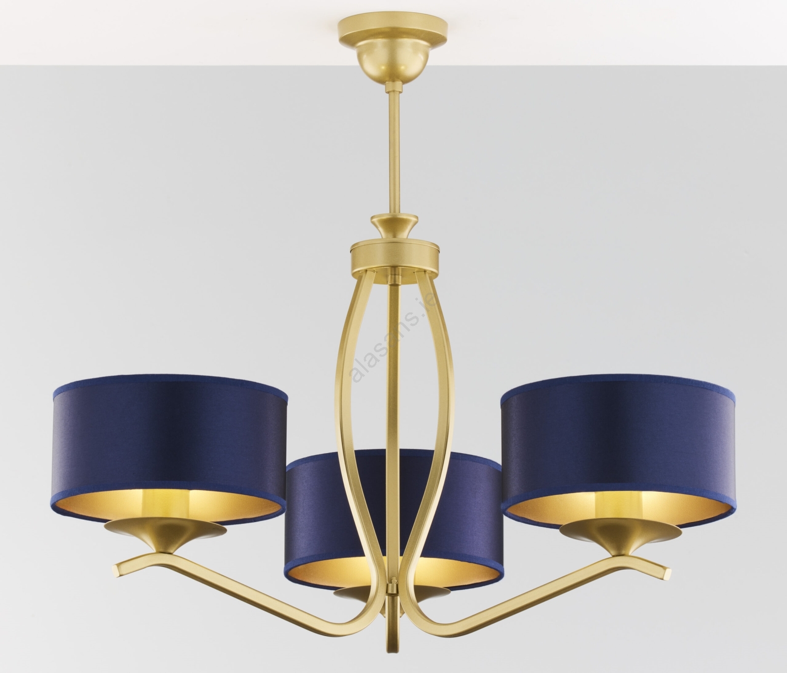 Jupiter 2113 - Rod Chandelier KASZMIR 3xE27/15W/230V blue/gold characterizes nice and functional design.  A bulb with E27 cap is suitable for the light. Here, you can buy other bulbs at advantageous prices. You will have an interesting addtiion to your home.