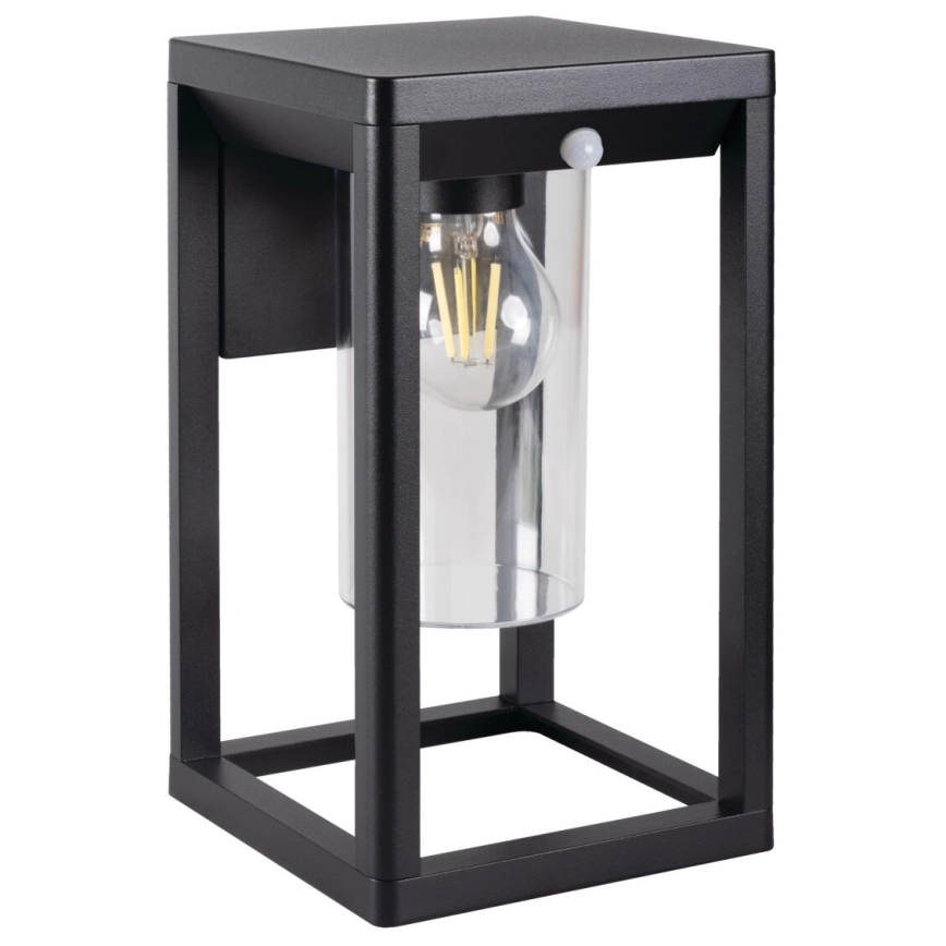 • This outdoor wall light with a sensor features a unique lantern-like shape.