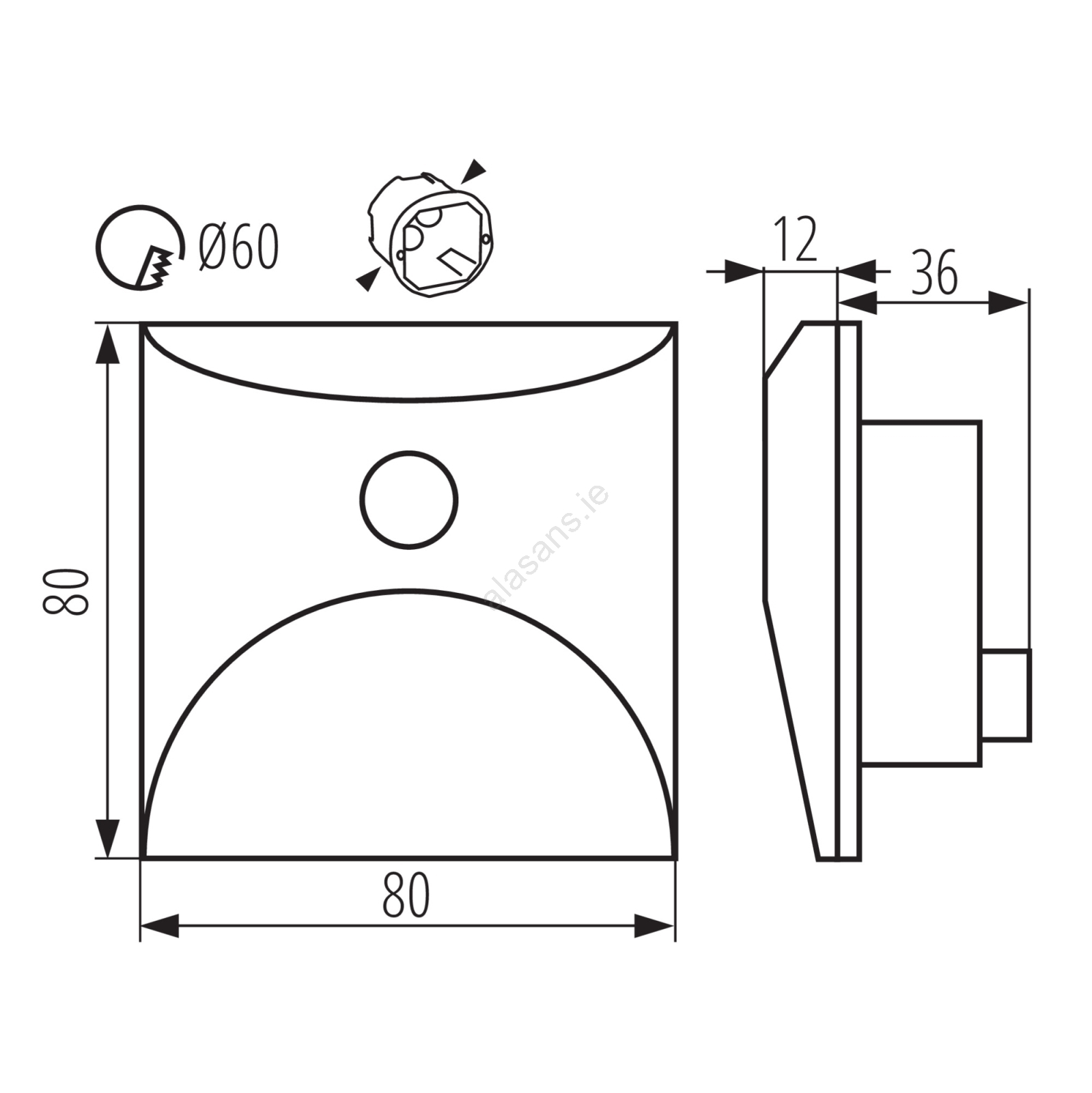 • Mounting box for recessed installation is included in the package.