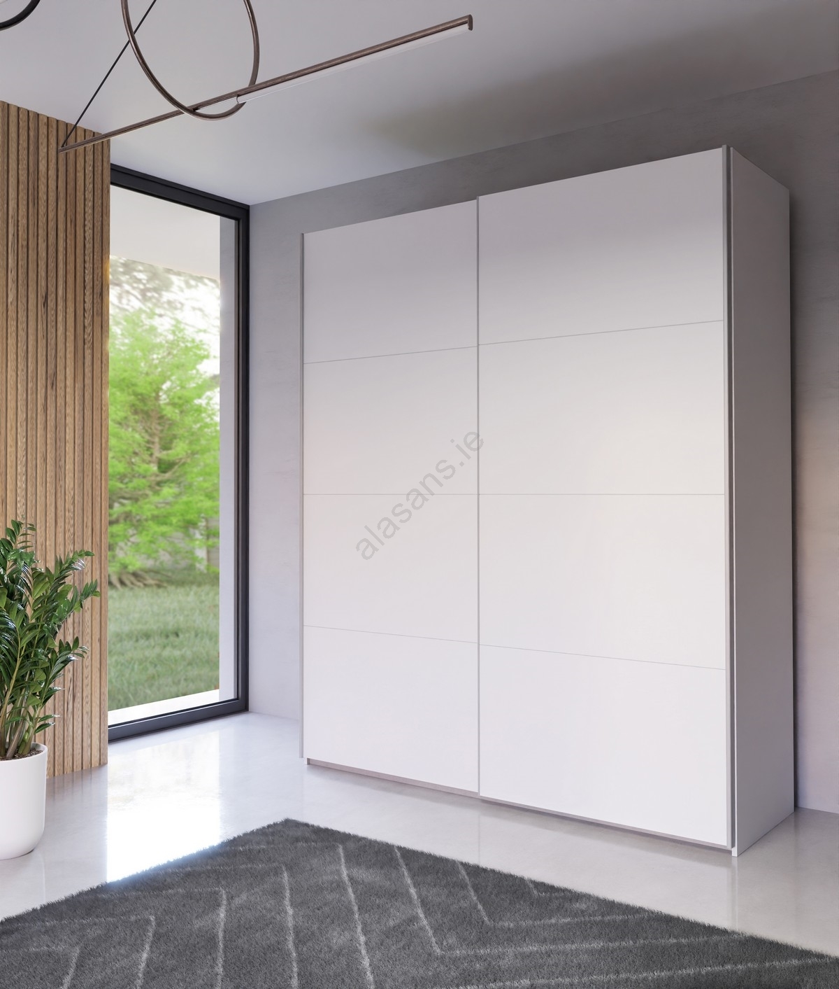 • The wardrobe features clothes rails, shelves and generous storage space for your garments, bags and seasonal items.