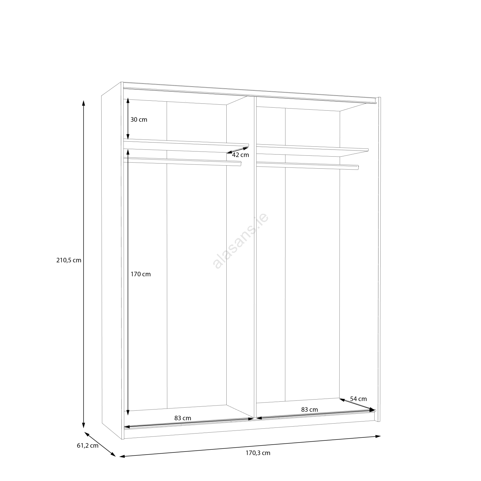 • The wardrobe features hanging rails, shelves and generous storage space for your clothes, bags and seasonal items.