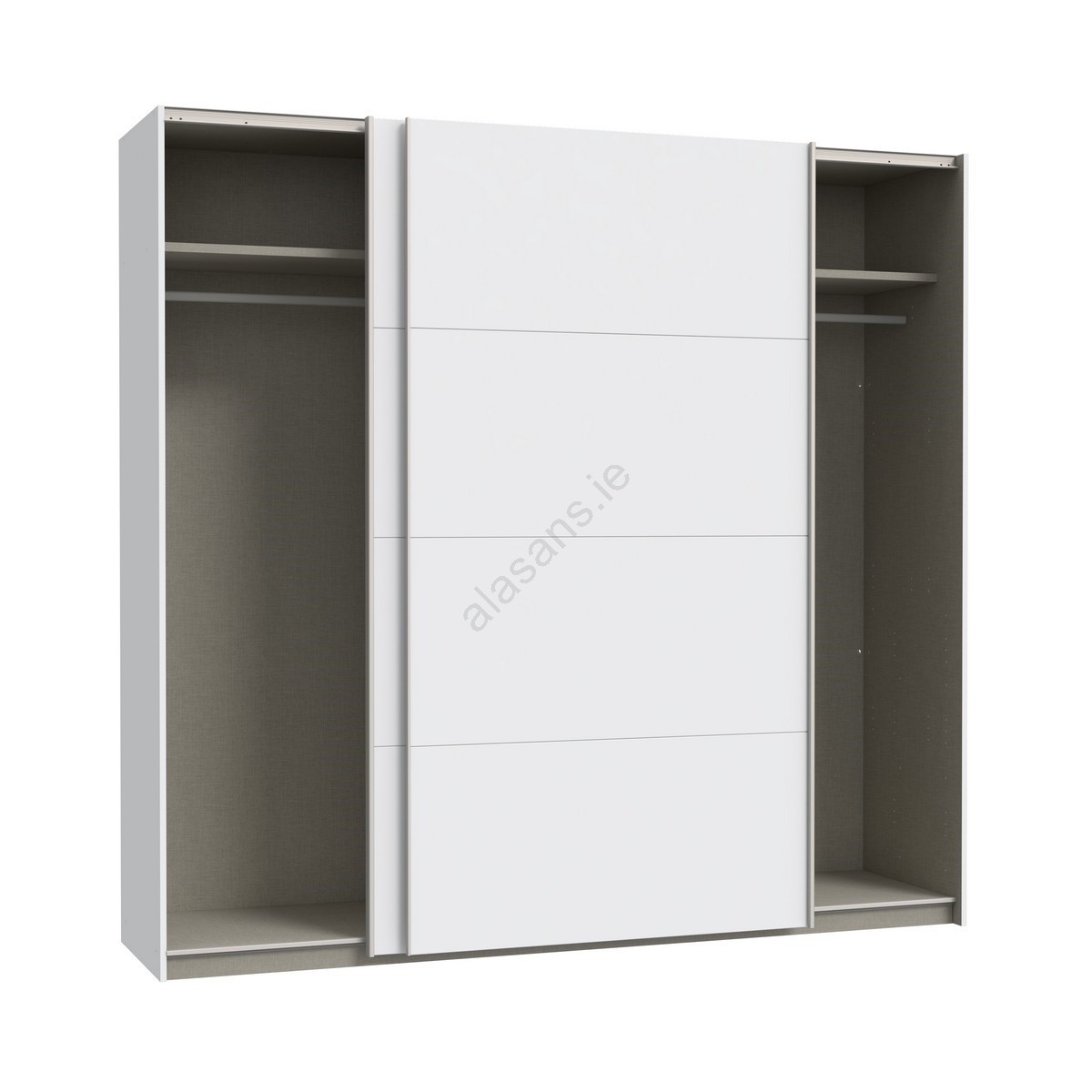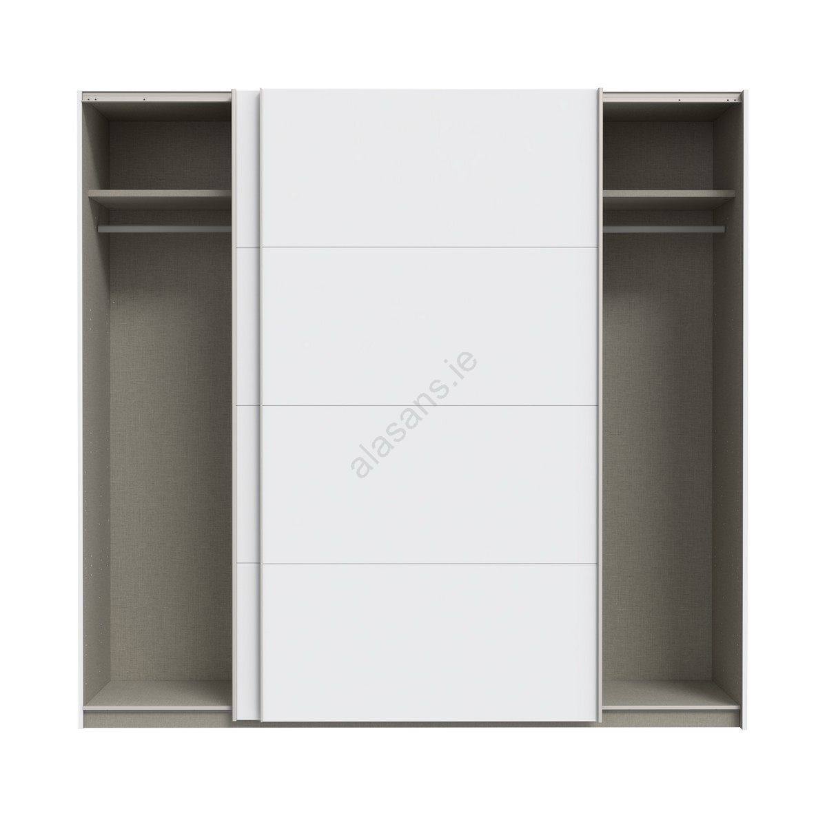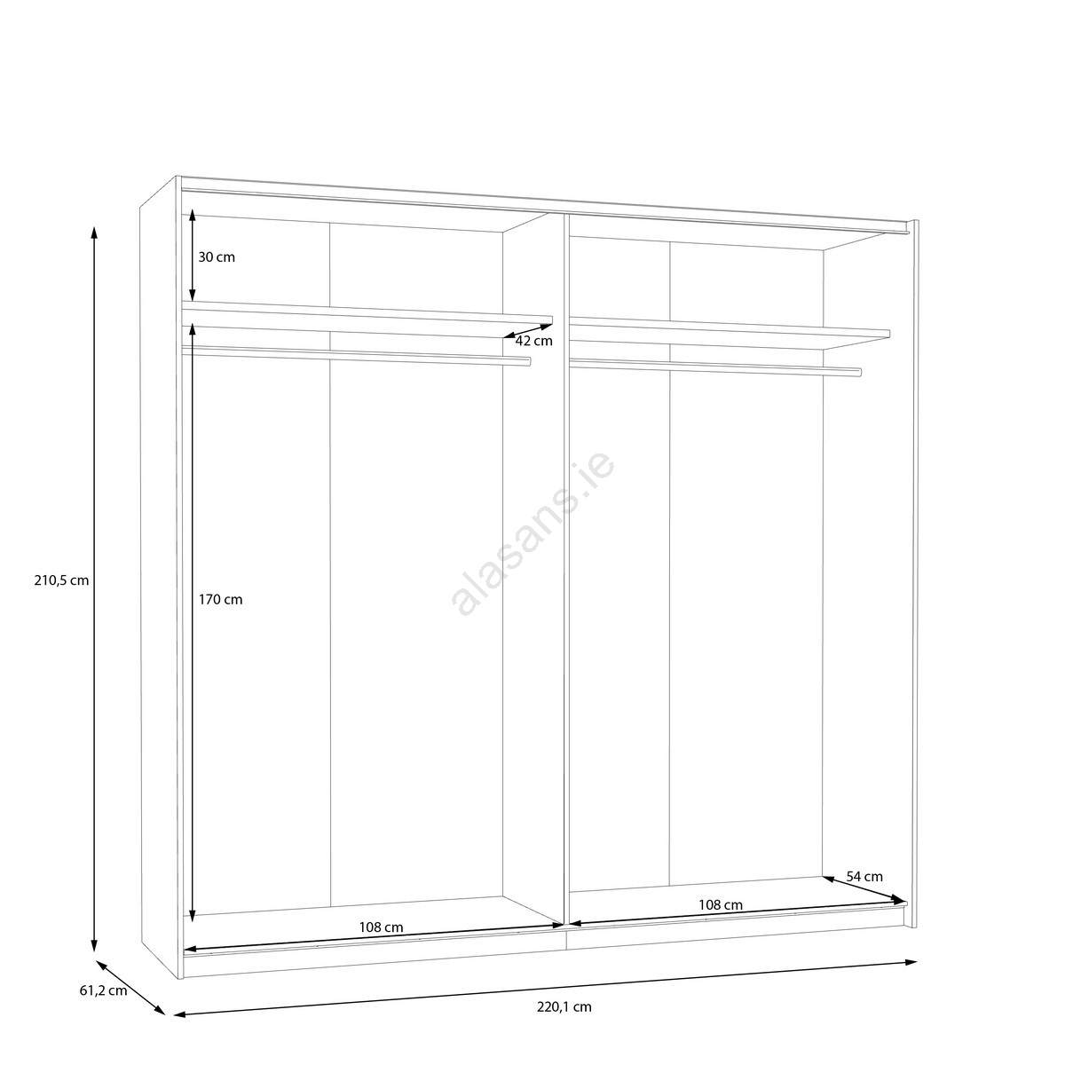 • The wardrobe features hanging rails, shelves and generous storage space for your clothes, bags and seasonal items.