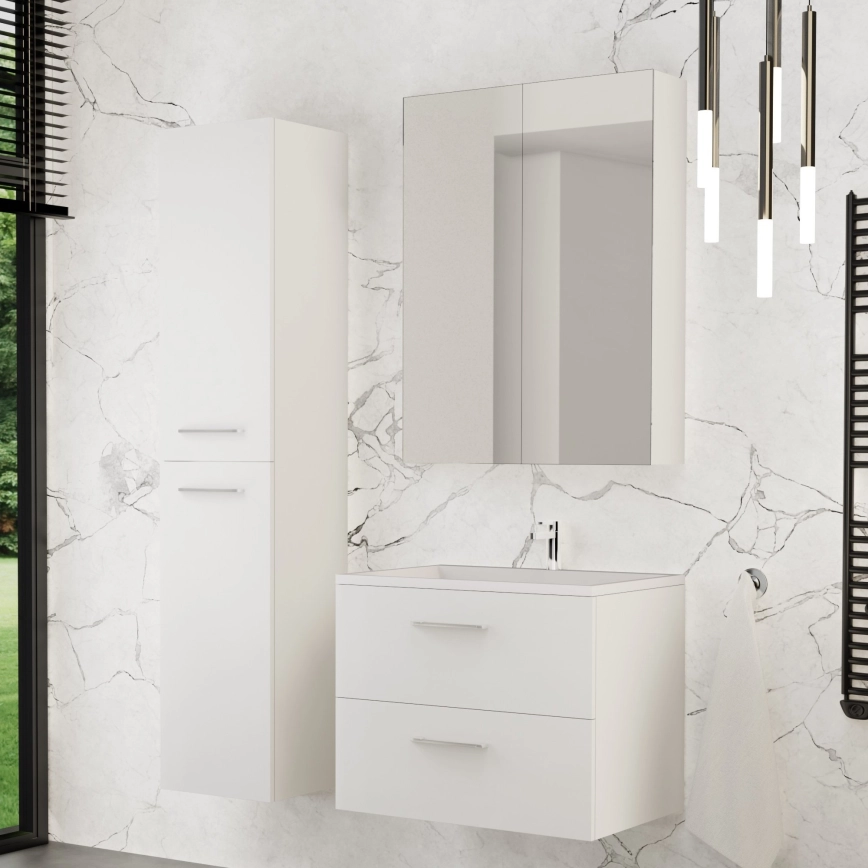 • KATE bathroom vanity with basin + mirrored cabinet + wall cabinet white