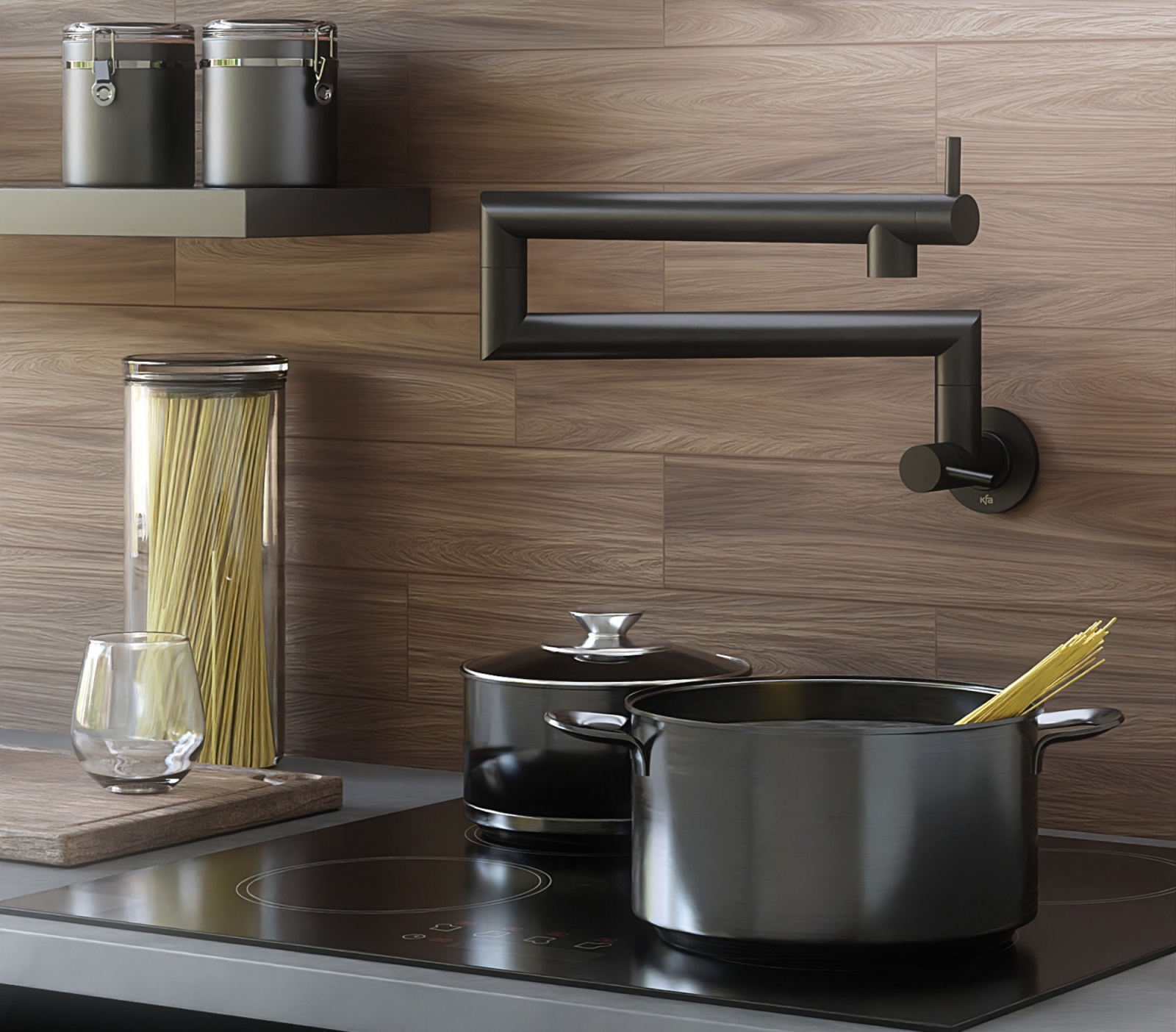• Two levers provide convenient water control from both sides of the faucet, which is practical when handling large pots.