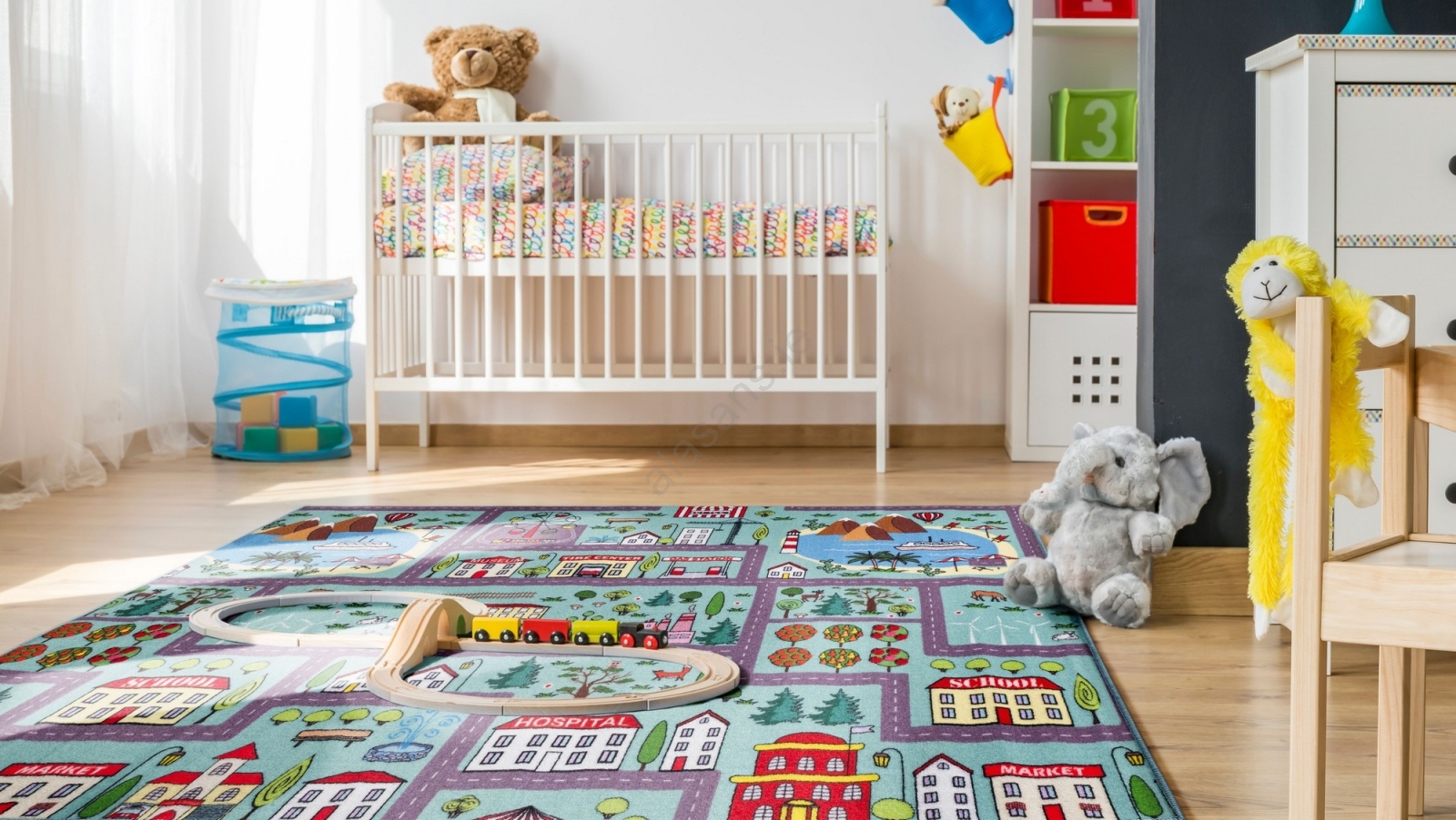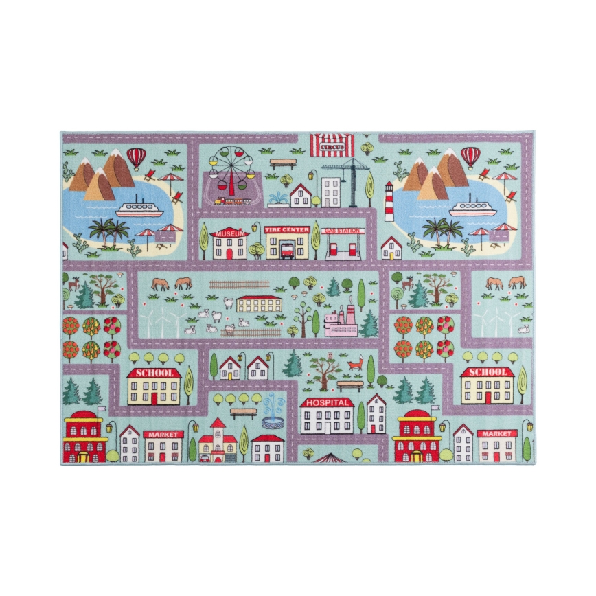 Kids' rug STELLA STREETS 80x100 cm turquoise/city