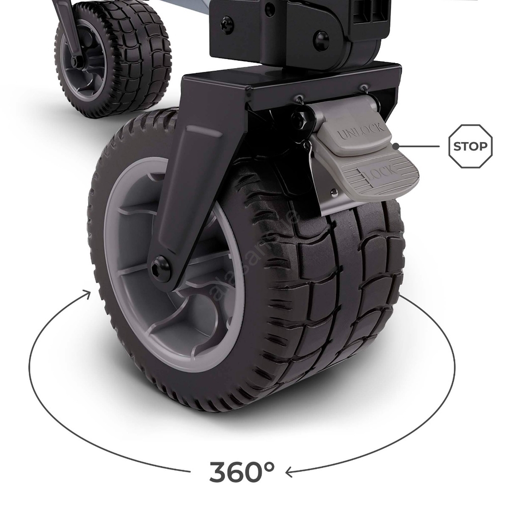 • Large off-road PVC wheels 10 cm wide easily handle sand, grass and gravel, keeping the cart stable even on uneven terrain.