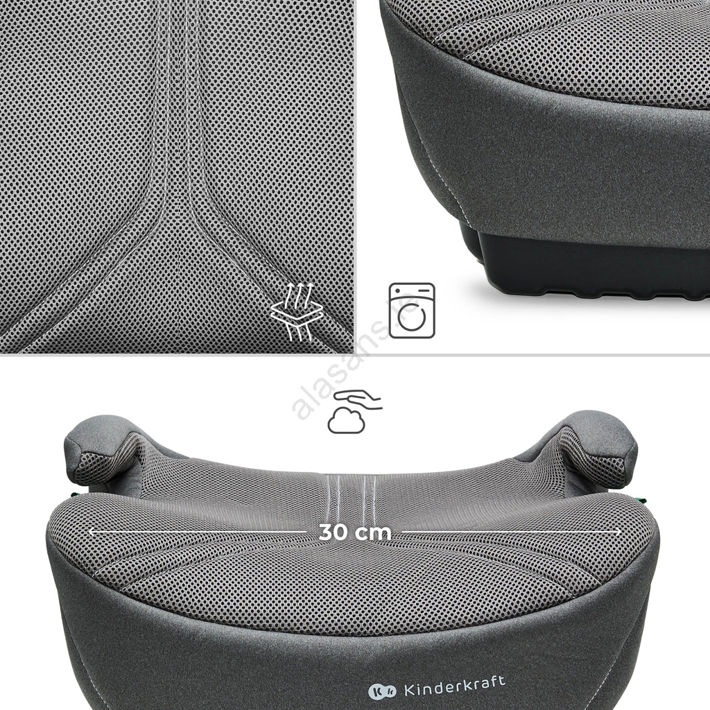 • Secure ISOFIX installation that enables quick and safe attachment of the booster to the vehicle.