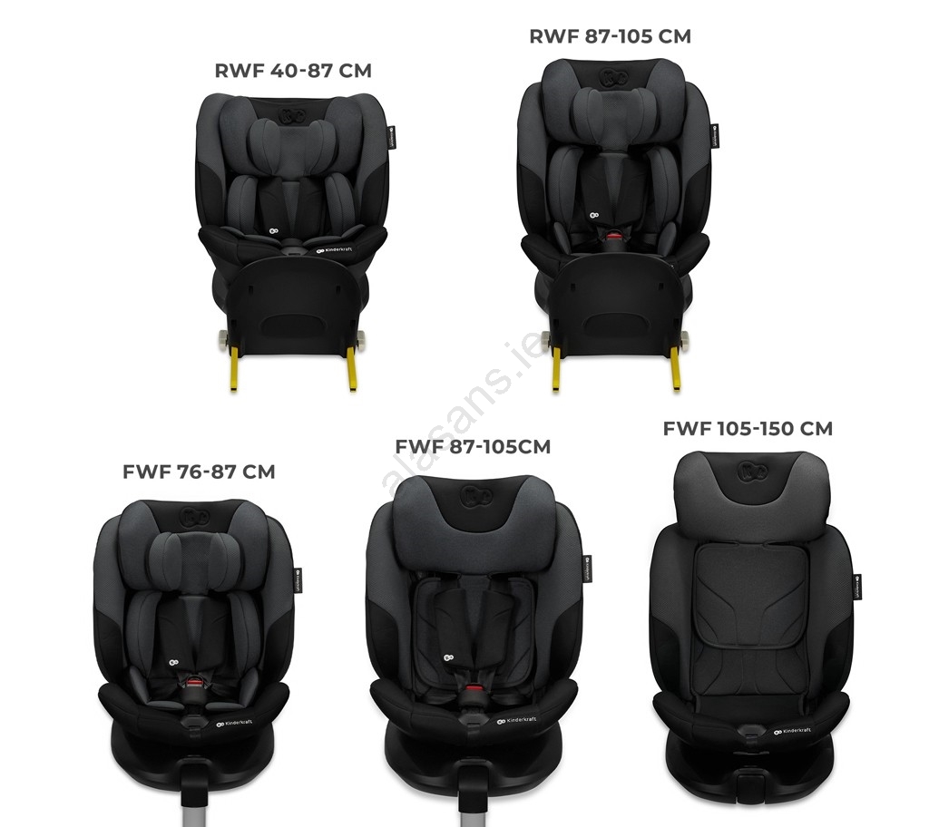 • Rearward-facing travel (RWF) is possible up to four years of age, which significantly increases protection in a frontal collision.