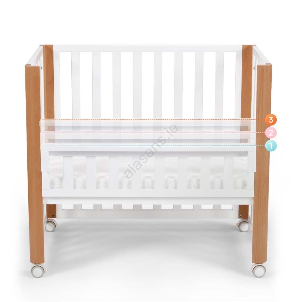 • Adjustable mattress base height: 3 positions in bedside mode and 4 in crib mode.