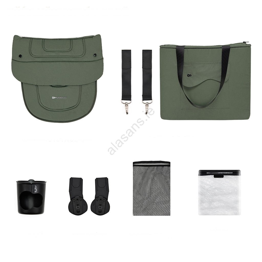 The stroller also comes with a range of practical accessories such as a mosquito net, child footmuff, rain cover, cup holder, handle bag for parents, and car seat adapters.