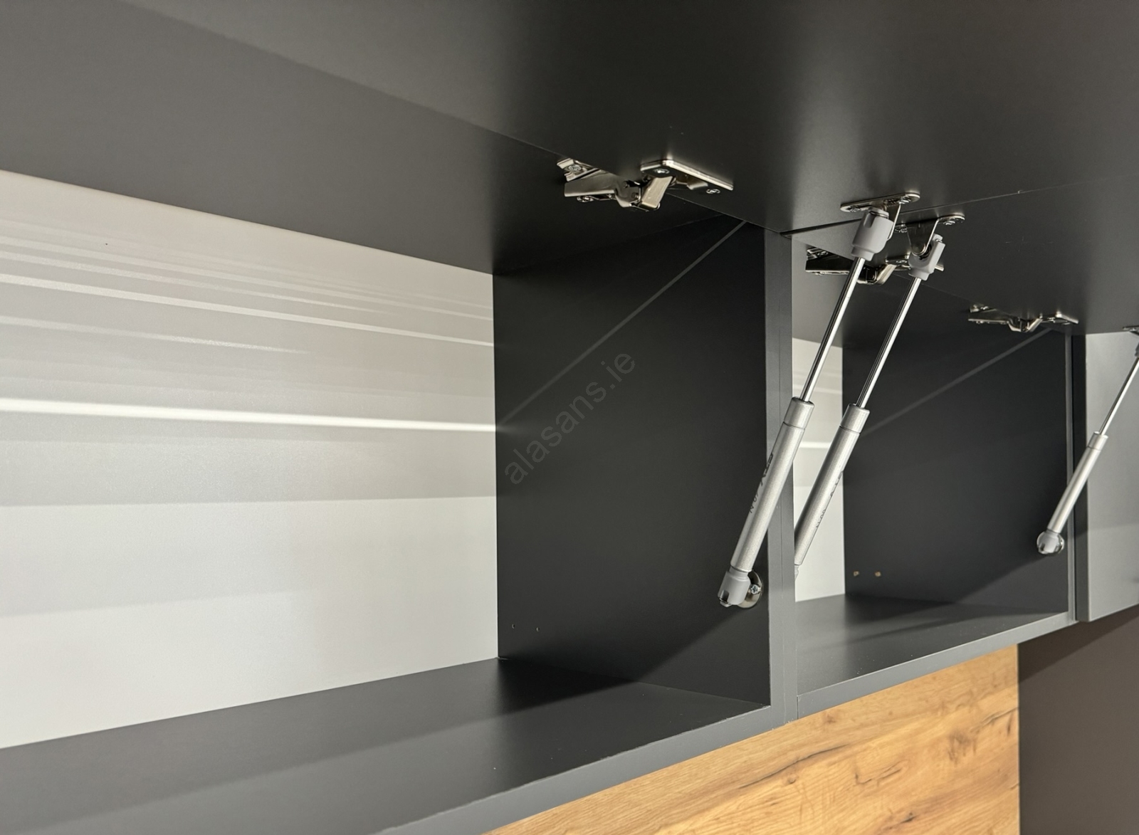 • Upper cabinets are equipped with gas struts, and the drawers are fitted with high-quality enclosed metal runners.