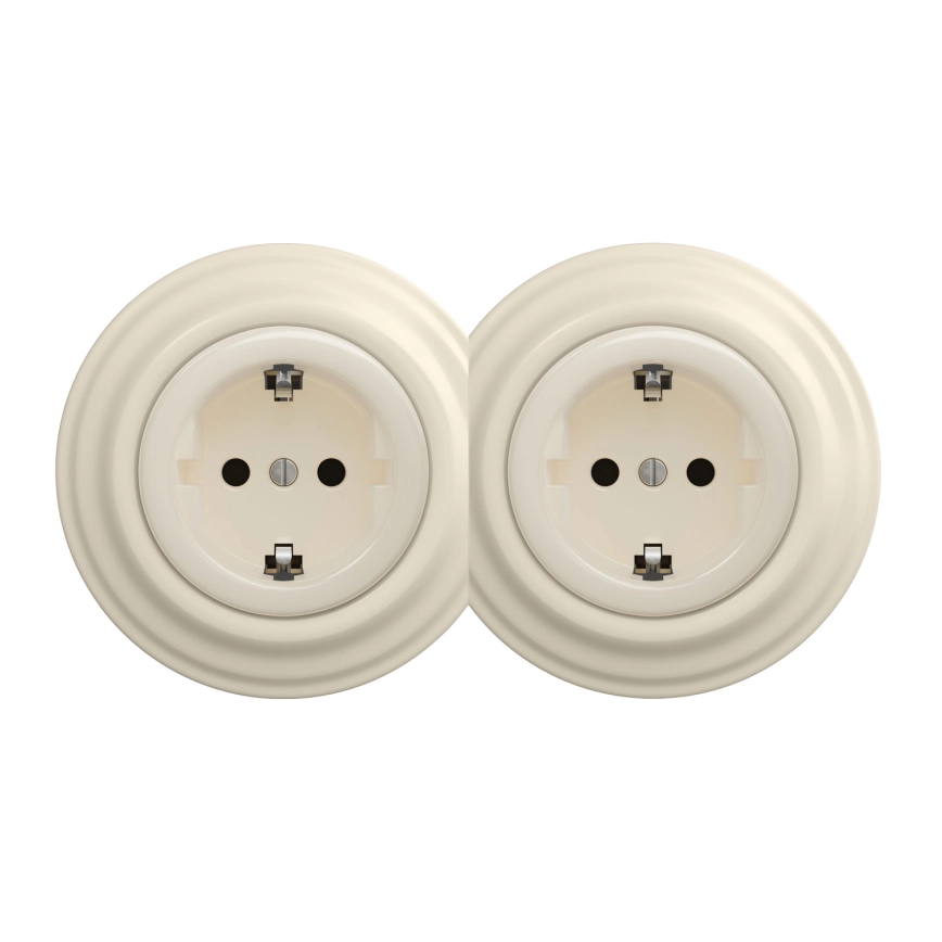 Kliklap - Double Retro SCHUKO Wall Socket with Frame, 230V/16A, Beige
