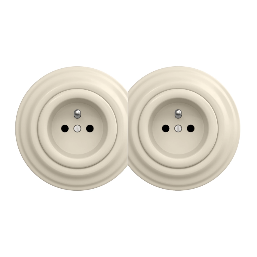 Kliklap - Double Retro Wall Socket with Frame, 230 V, Beige