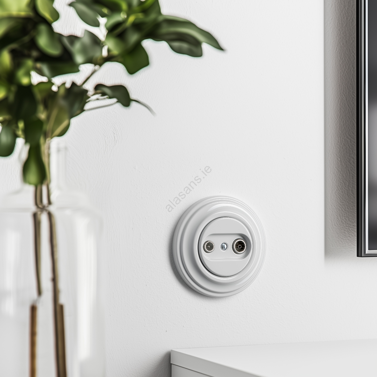 • Kliklap - Retro TV+R (end) wall outlet with frame, snow white