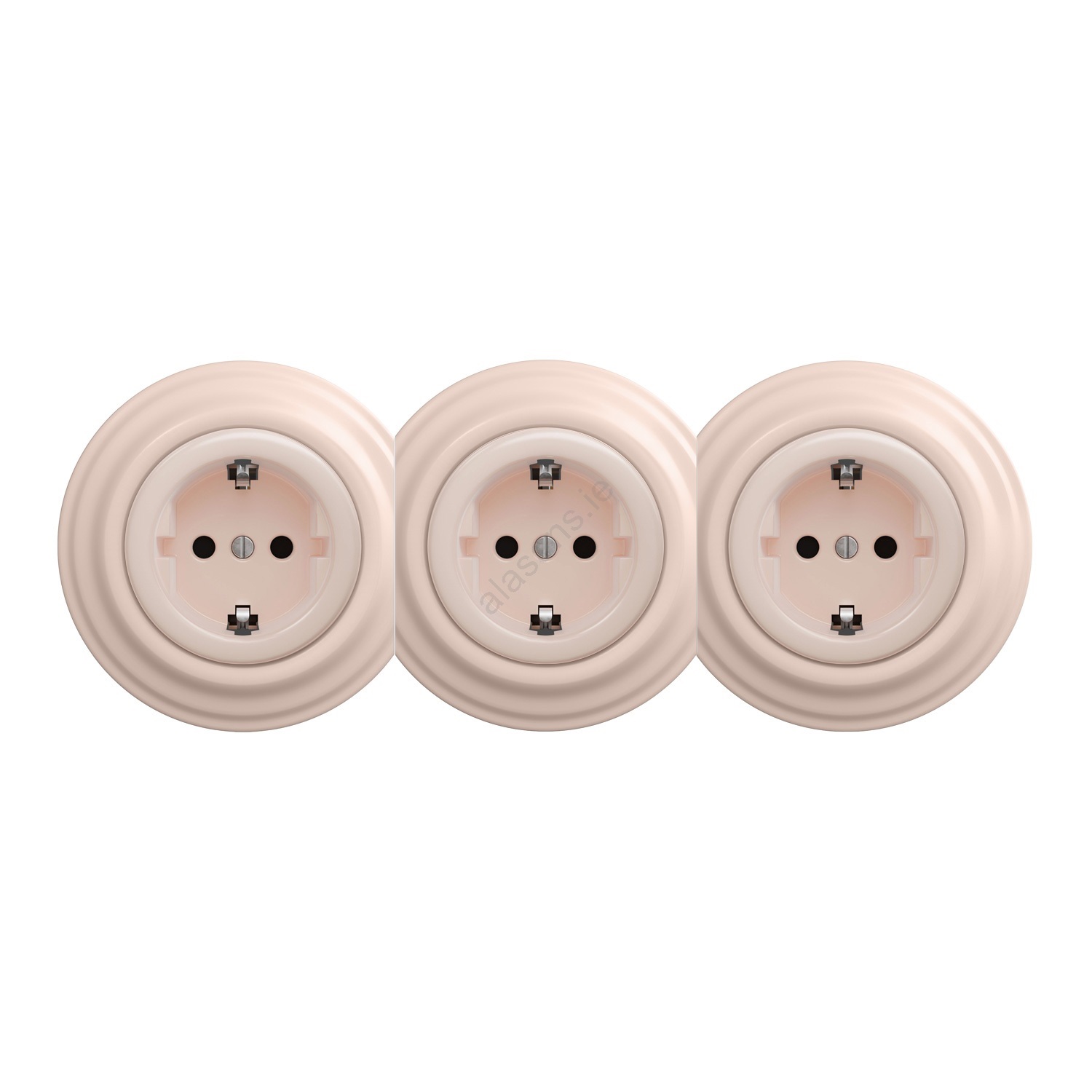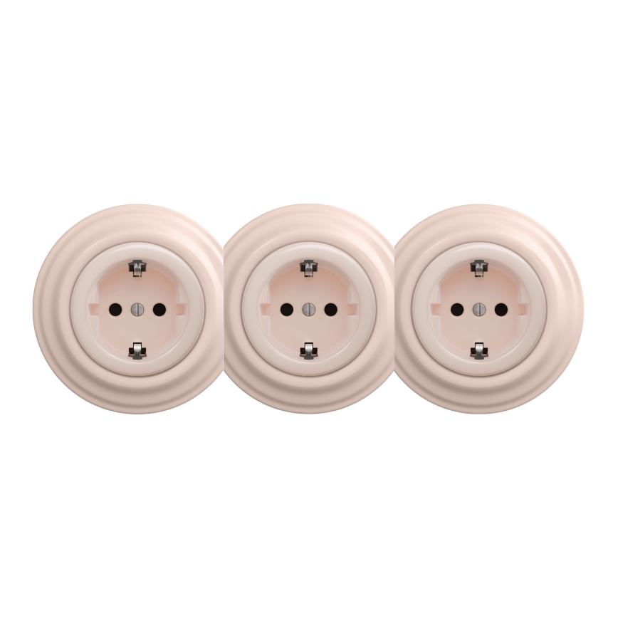 Kliklap - Triple retro Schuko wall socket with frame, 230V, antique pink