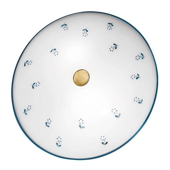 Kolarz 731.U12.4.17- Ceiling light NONNA 2xE14/60W/230V d. 32 cm blue/brass characterizes nice and functional design.  A bulb with E14 cap is suitable for the light. Here, you can buy other bulbs at advantageous prices. You will have an interesting addtiion to your home.