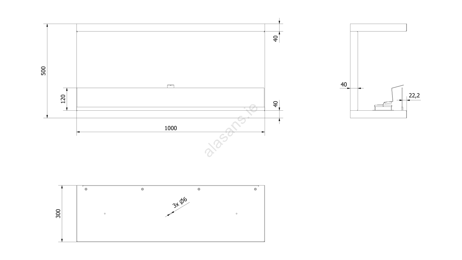 • Fireplace dimensions: 50 x 100 x 30 cm.